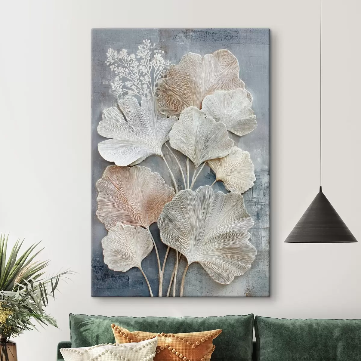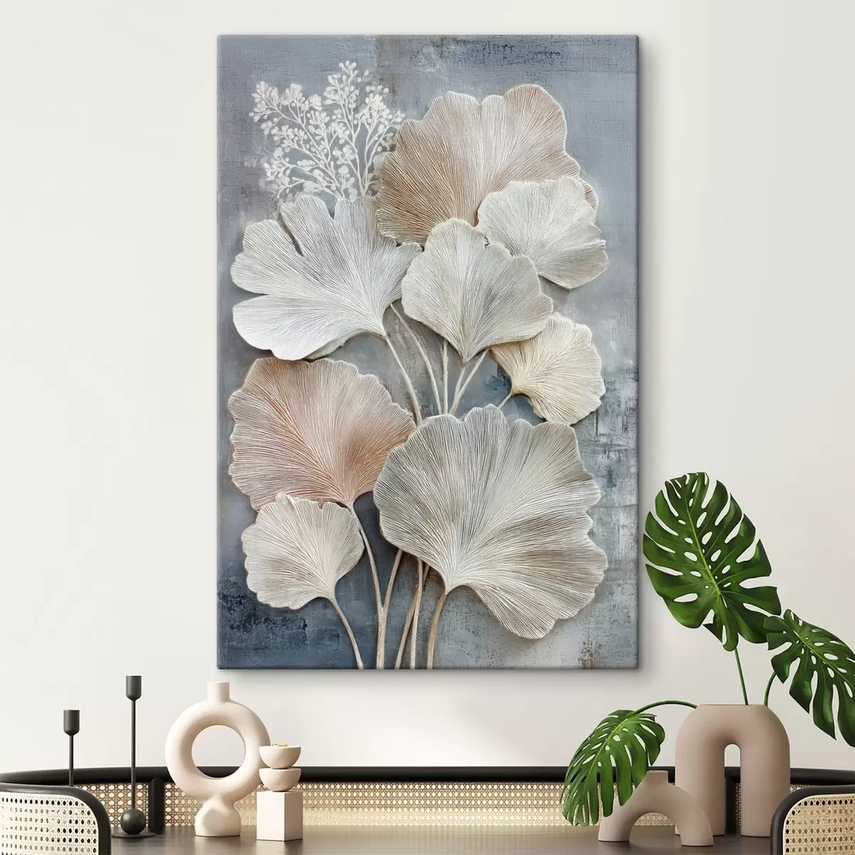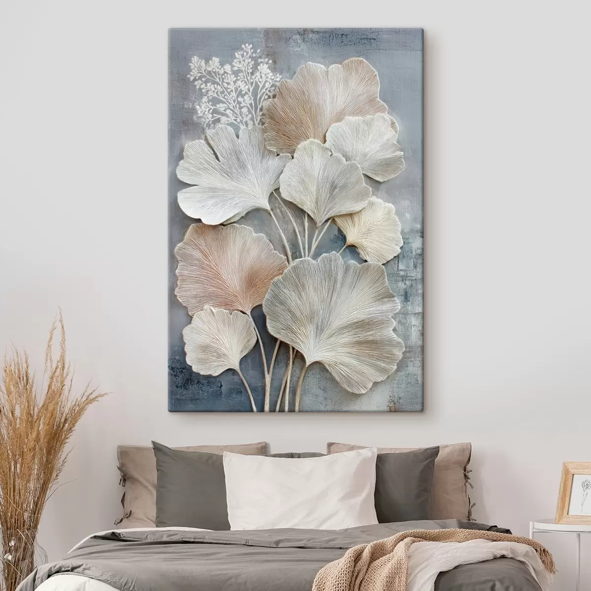 Obraz Abstrakcyjna kompozycja kwiatowa w beżowo-niebieskiej palecie barw s47963