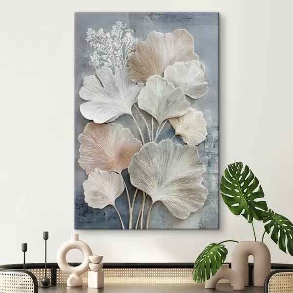 Obraz Abstrakcyjna kompozycja kwiatowa w beżowo-niebieskiej palecie barw Nr s47963