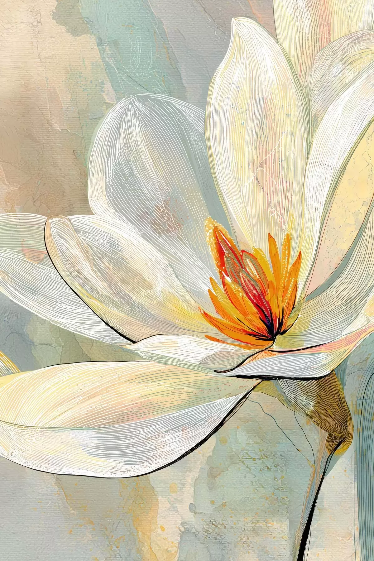 Obraz Abstrakcyjne magnolie w pastelowej palecie barw z naciskiem na liniową grafikę Nr s47970