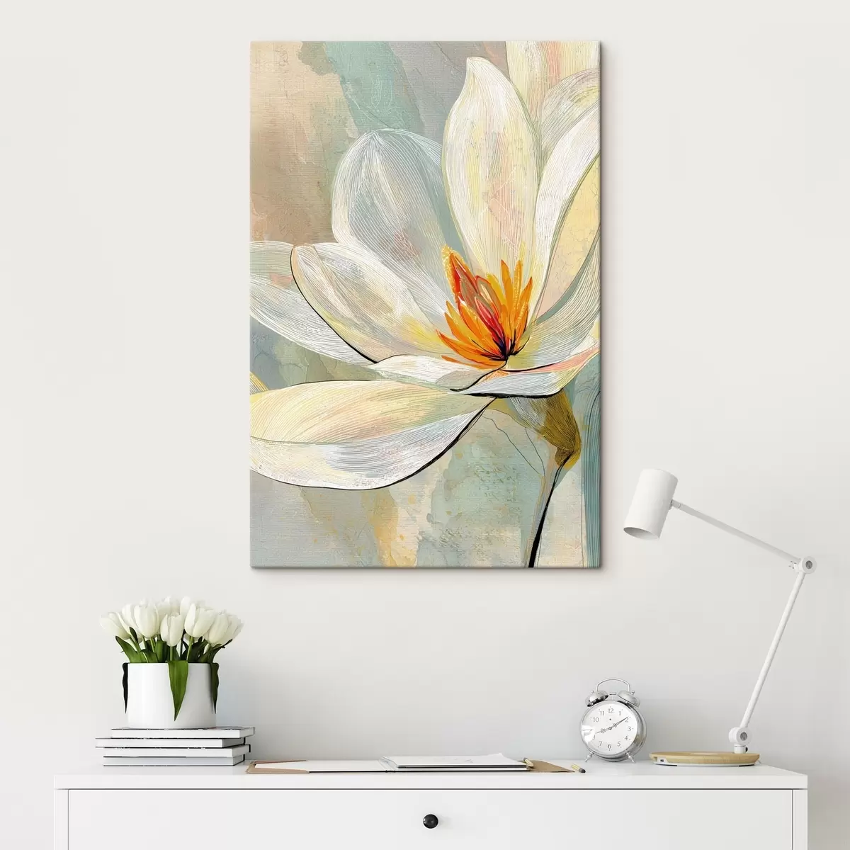 Obraz Abstrakcyjne magnolie w pastelowej palecie barw z naciskiem na liniową grafikę s47970