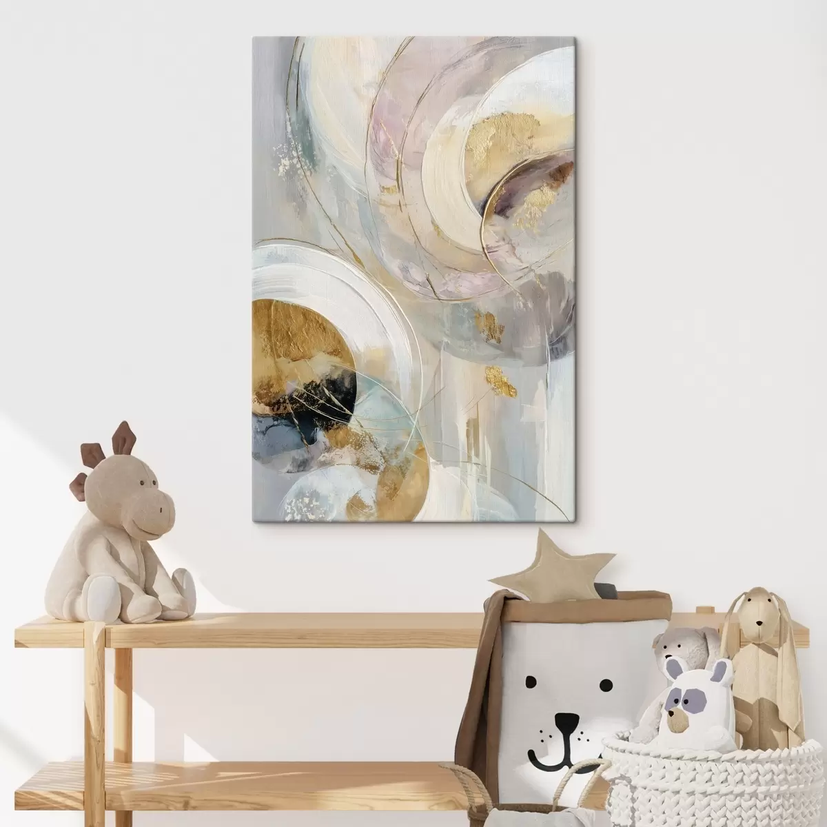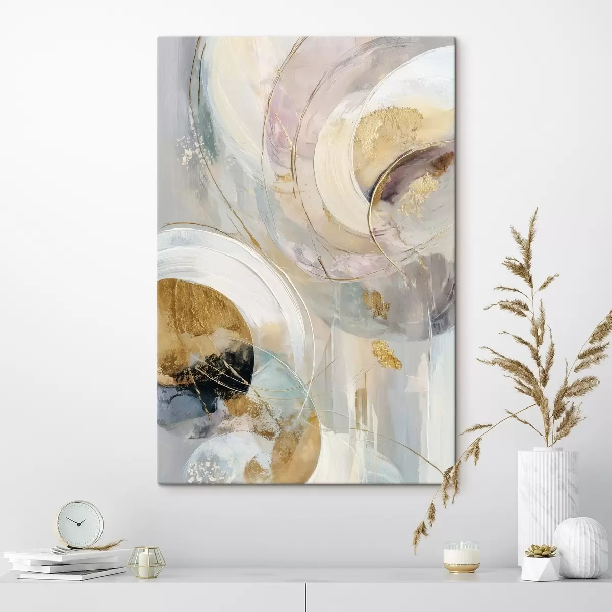 Obraz Kompozycja z warstwowymi elementami okrągłymi i pociągnięciami pędzla Nr s47983