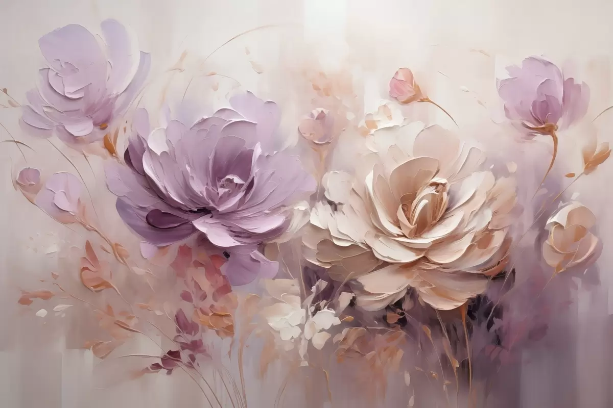 Obraz Delikatne duże kwiaty, imitacja obrazu olejnego s48002