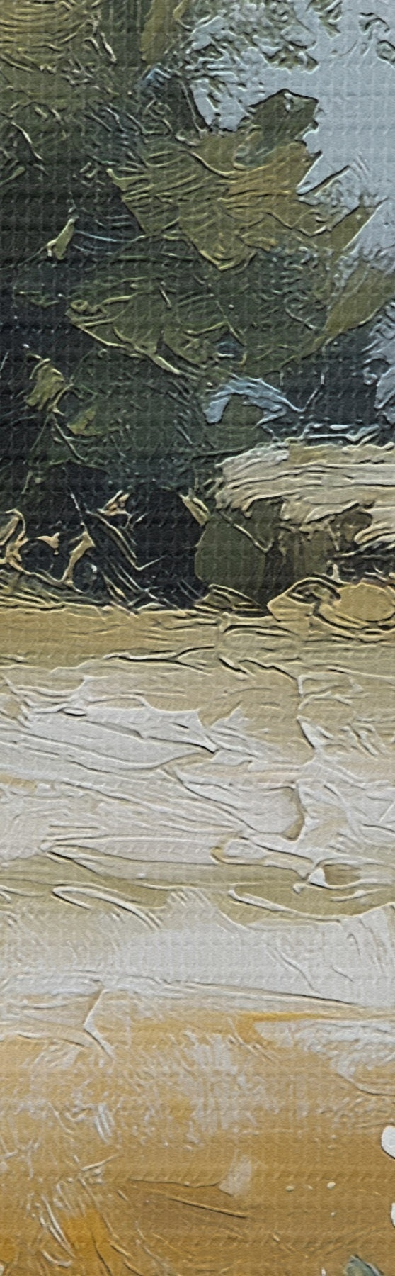 Drobny splot nici na tym płótnie przypomina powierzchnię profesjonalnych płócien artystycznych.