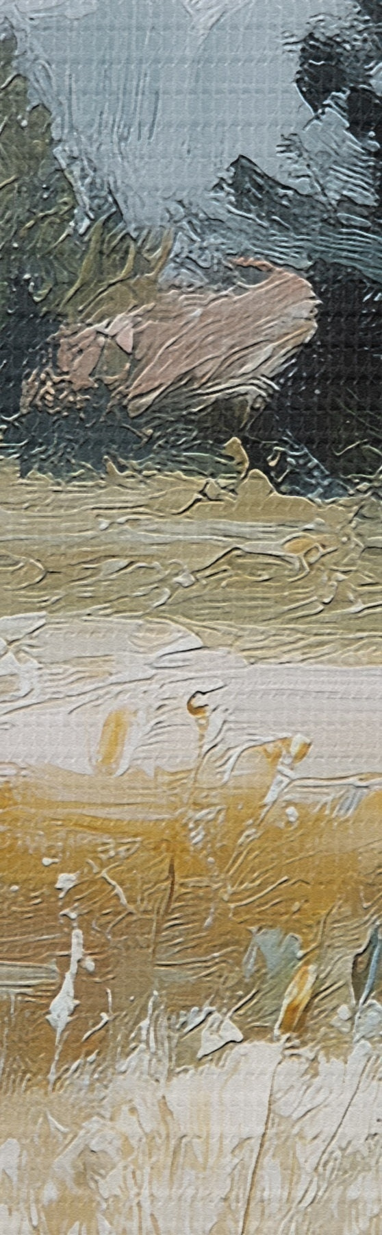 Drobny splot nici na tym płótnie przypomina powierzchnię profesjonalnych płócien artystycznych.