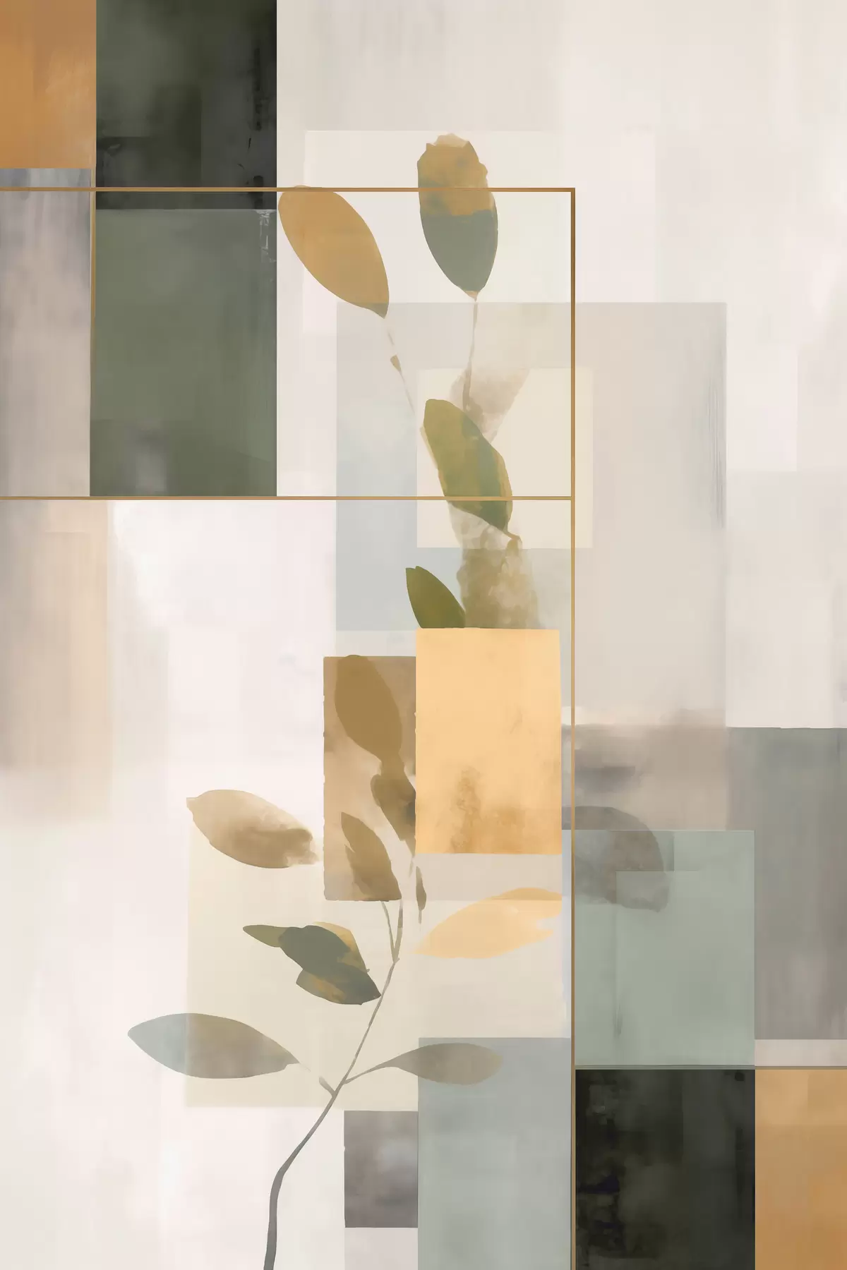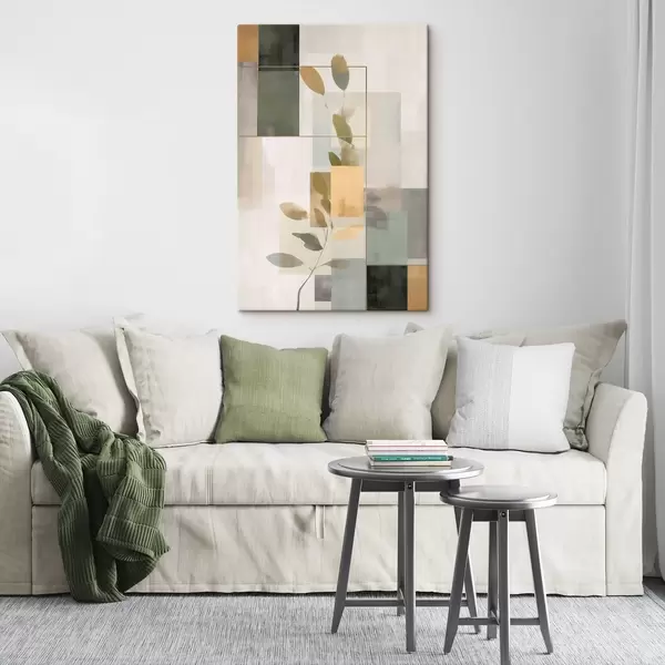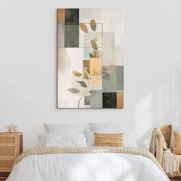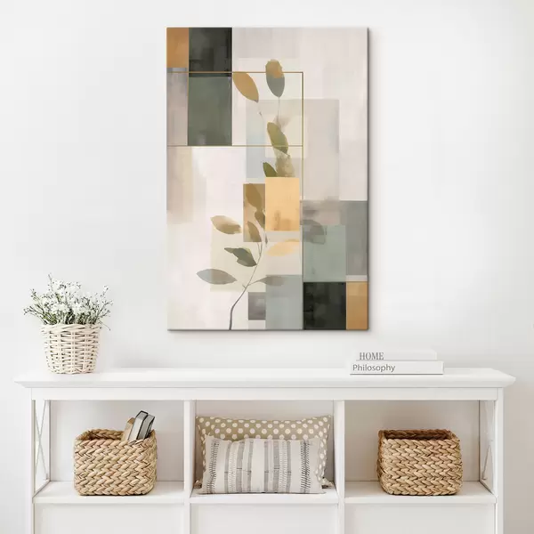 Obraz Geometryczna abstrakcja z gałęziami liści Nr s48020
