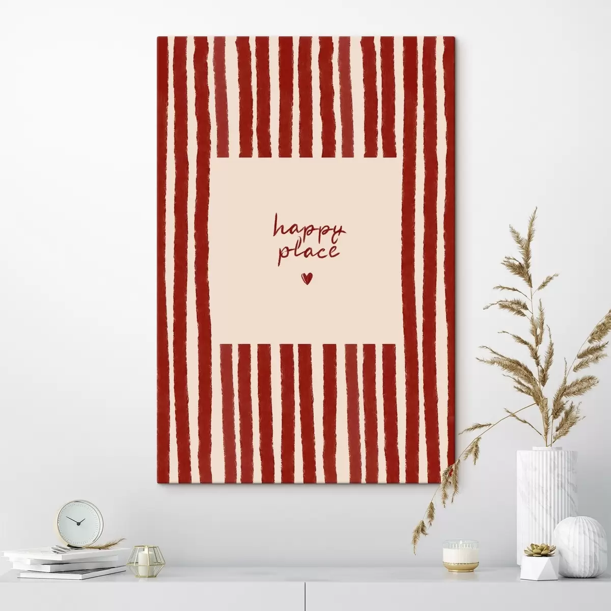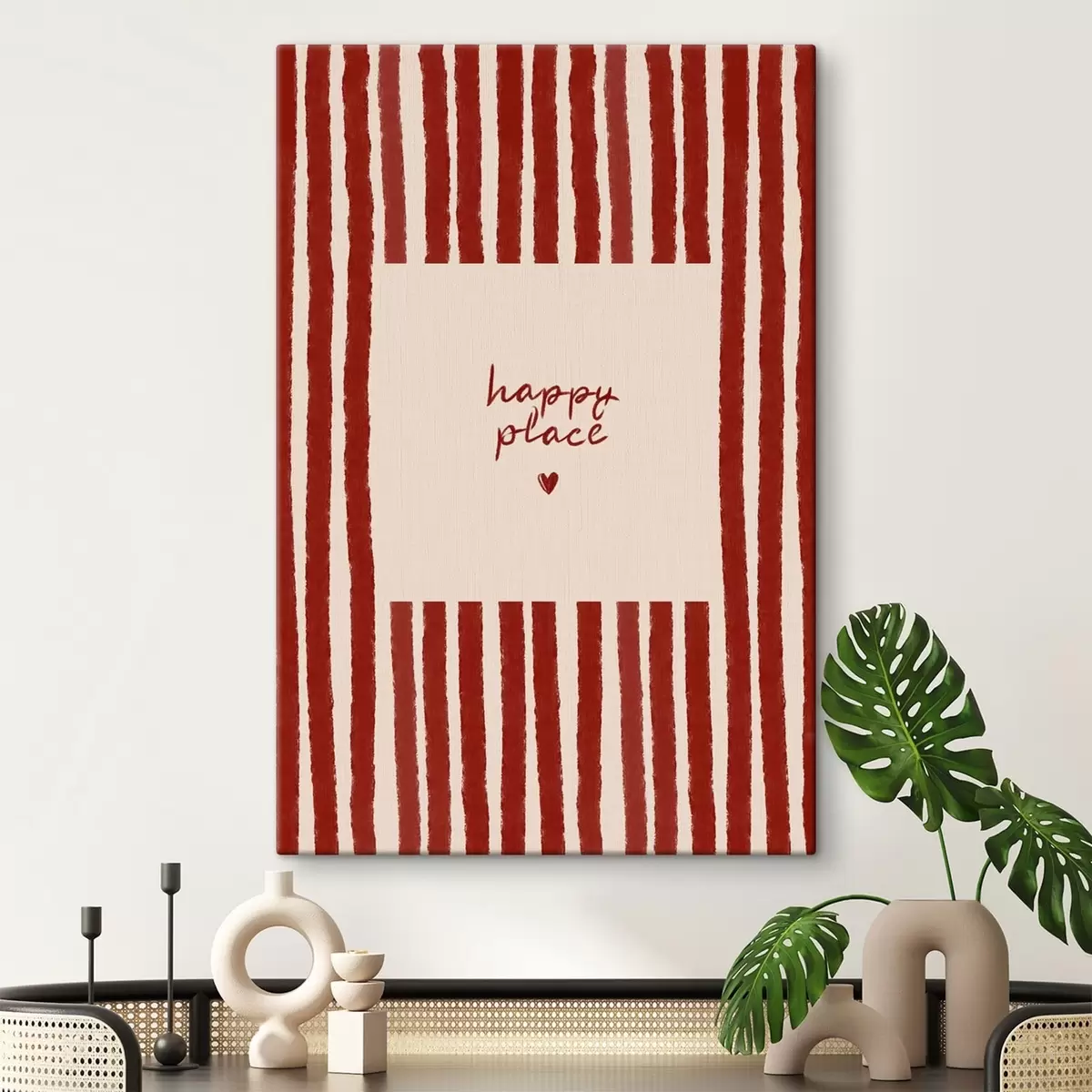 Obraz Czerwone paski z napisem „happy place” Nr s48025