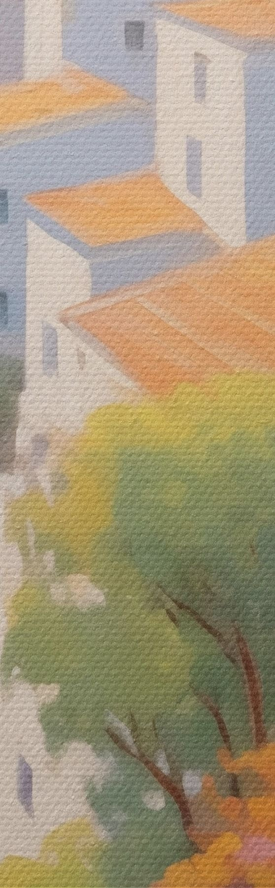 Drobny splot nici na tym płótnie przypomina powierzchnię profesjonalnych płócien artystycznych.