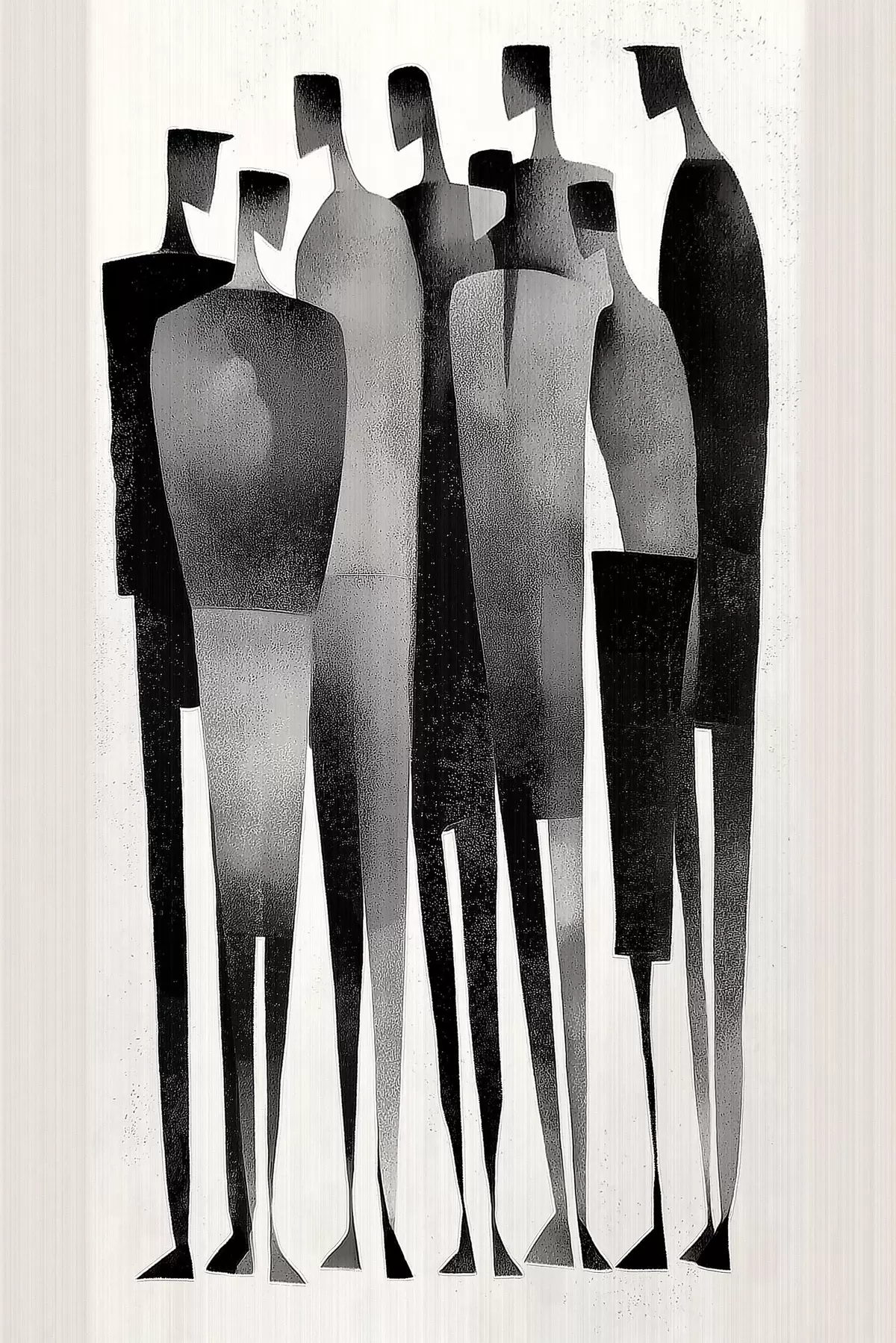Obraz minimalistyczne, wydłużone postacie ludzkie stojące w rzędzie Nr s48069