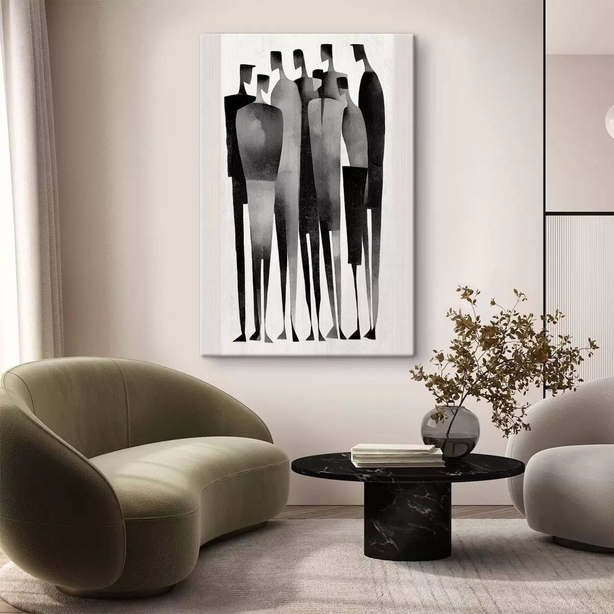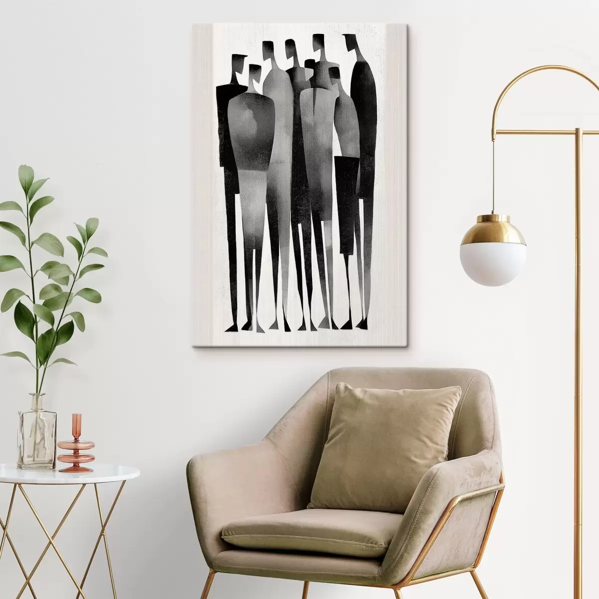 Obraz minimalistyczne, wydłużone postacie ludzkie stojące w rzędzie s48069