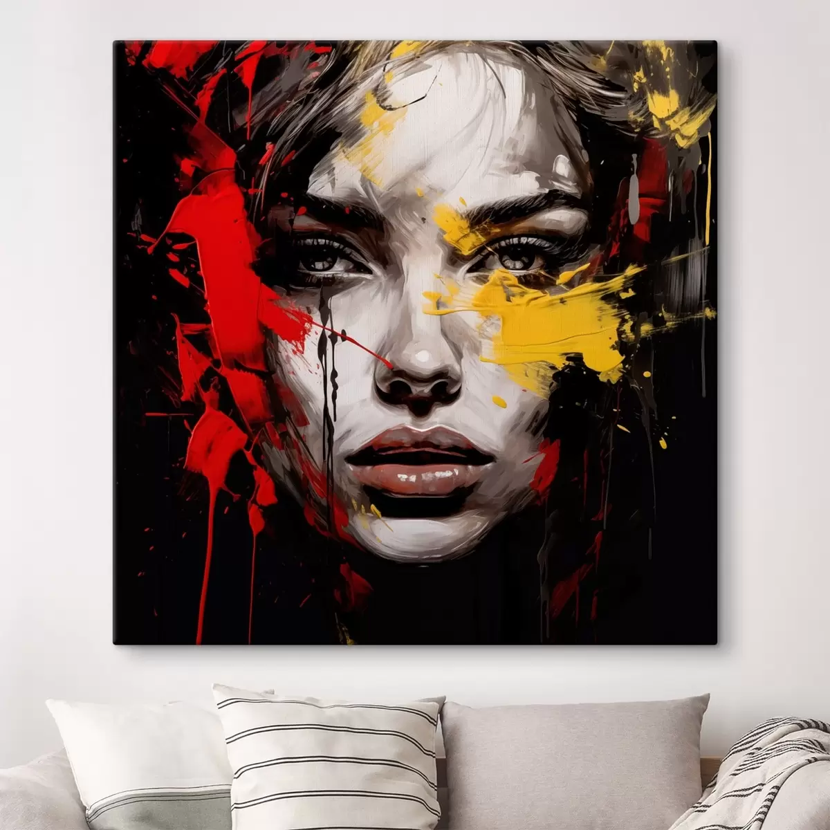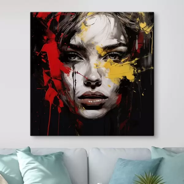 Obraz Portret kobiety z czerwonymi i żółtymi pociągnięciami pędzla Nr s48089