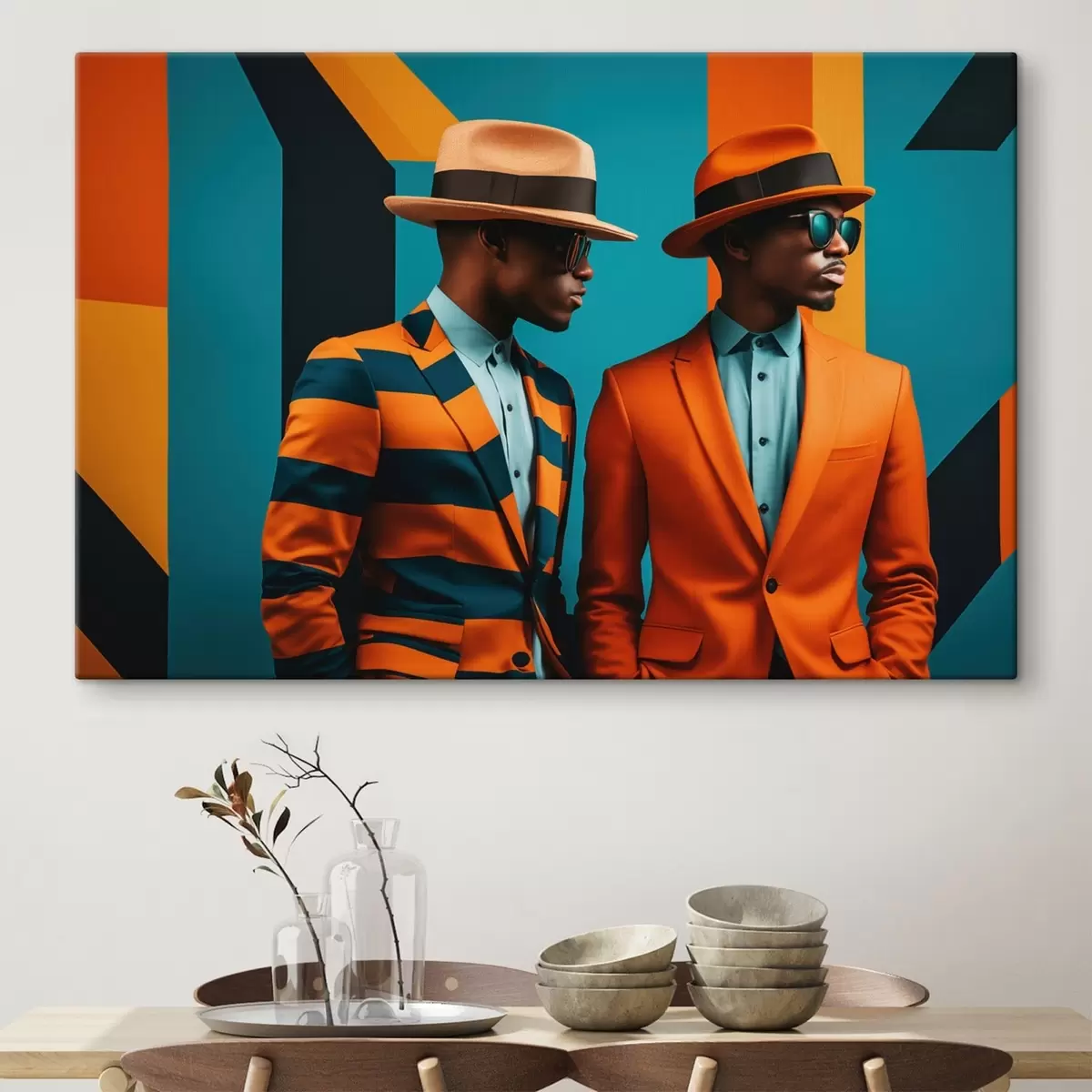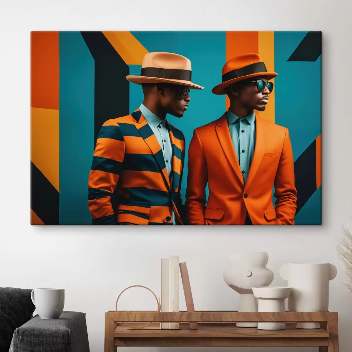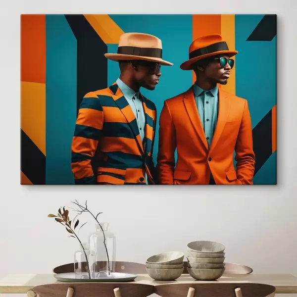 Obraz Dwóch mężczyzn w jasnych garniturach i kapeluszach Nr s48091