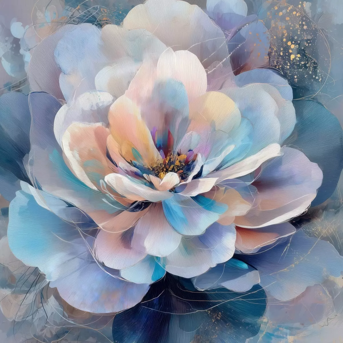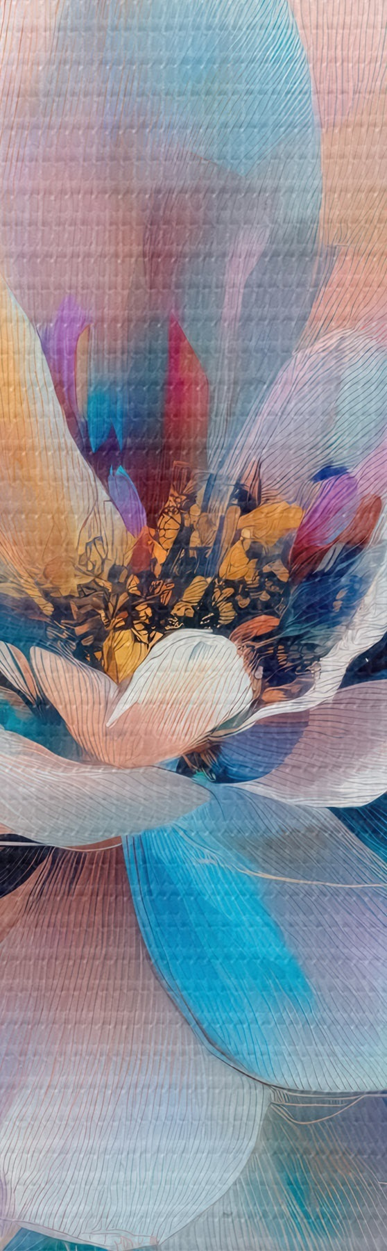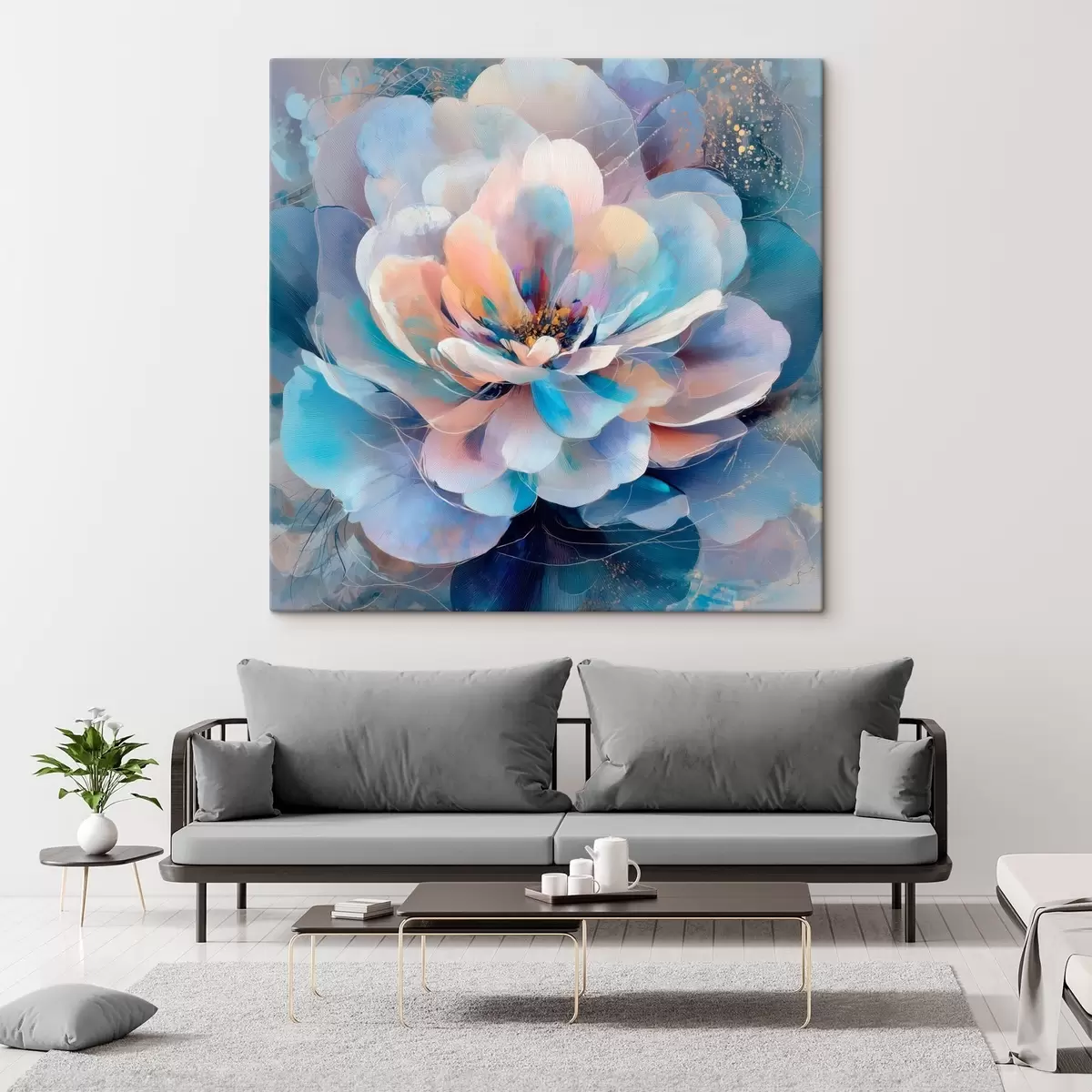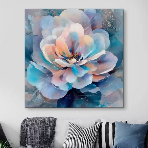 Obraz Abstrakcyjny kwiat w różowo-niebieskiej kolorystyce, utrzymany w stylu malarstwa współczesnego Nr s48185
