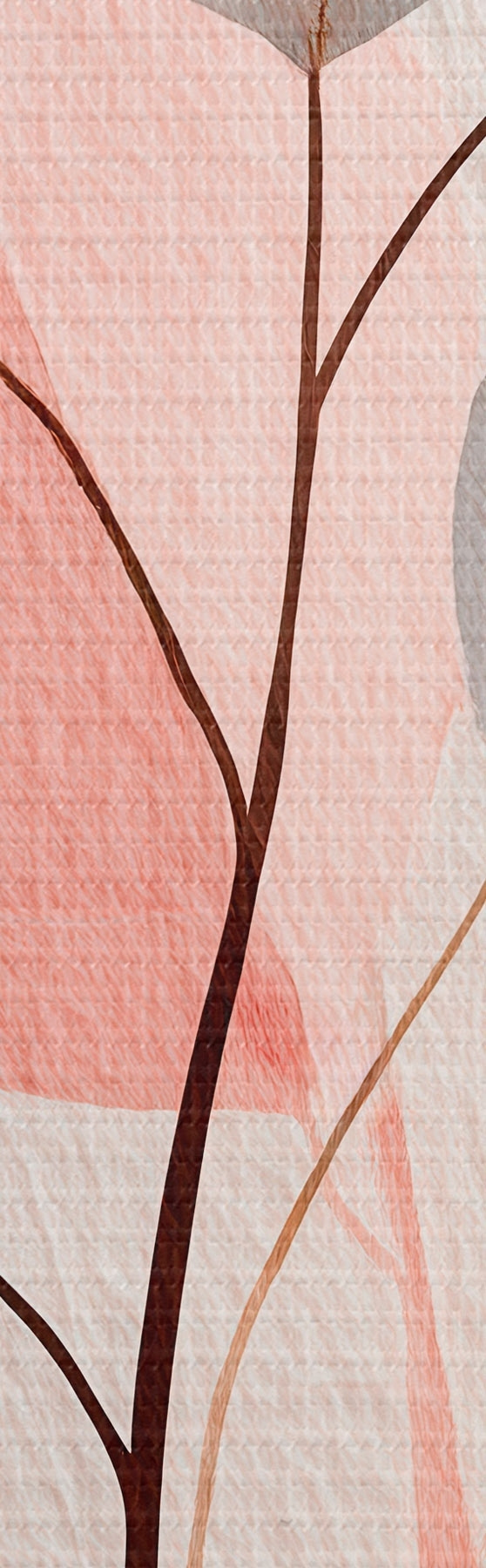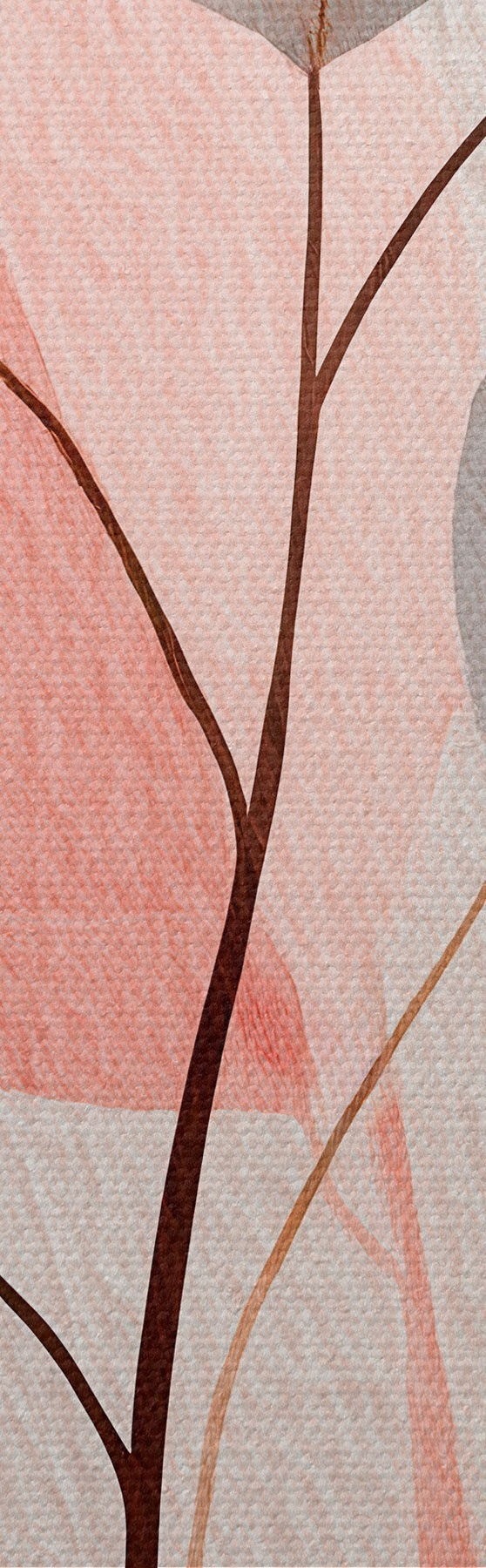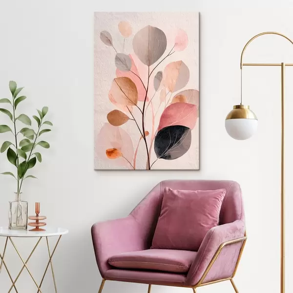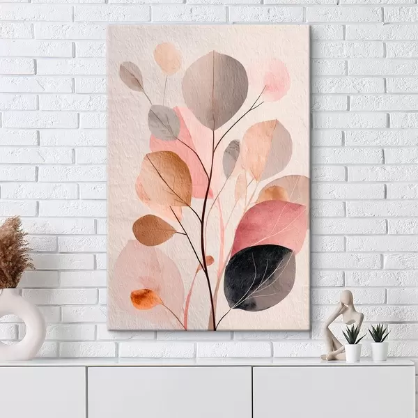 Obraz Abstrakcyjna gałązka z okrągłymi liśćmi w ciepłych odcieniach beżu i koralowca s48187