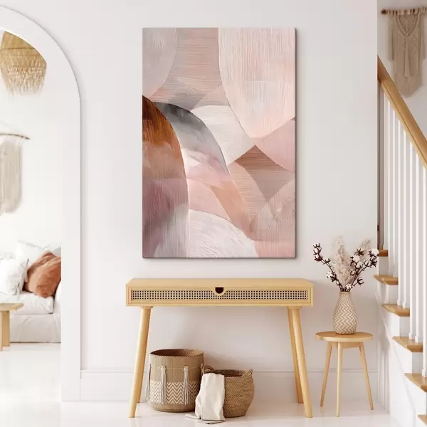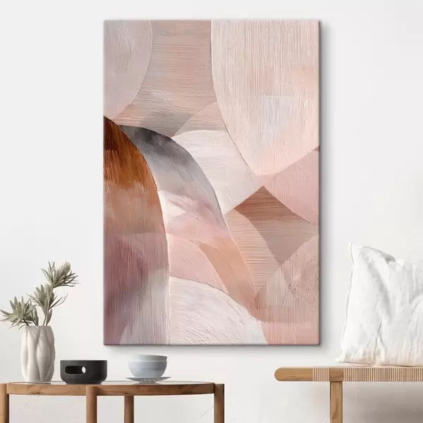 Obraz Geometryczna abstrakcja w ciepłej brzoskwiniowej kolorystyce w stylu plakatu artystycznego Nr s48189