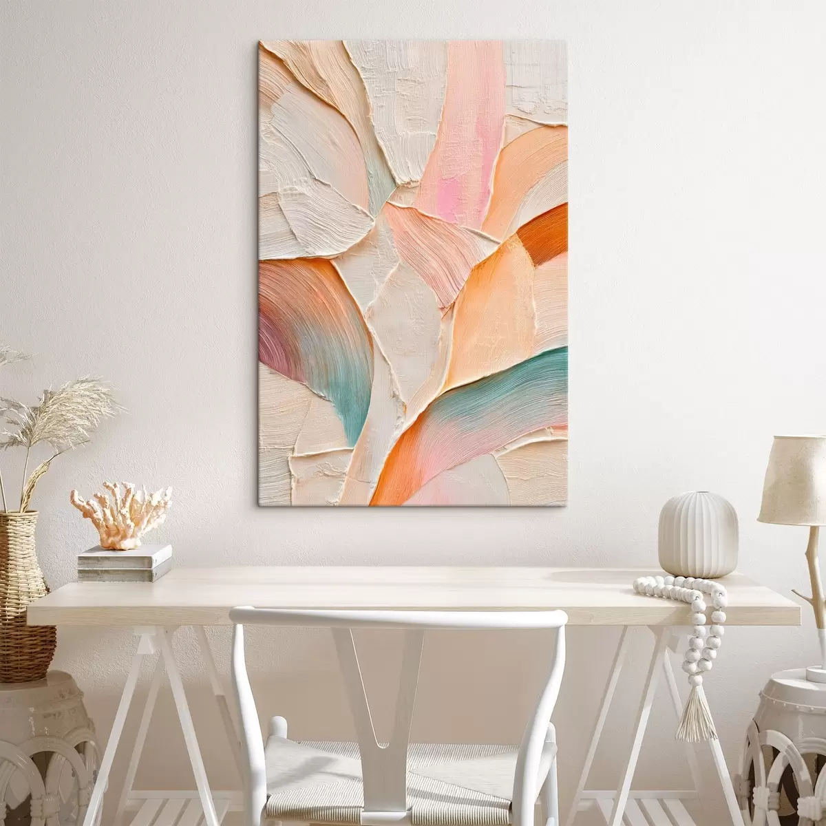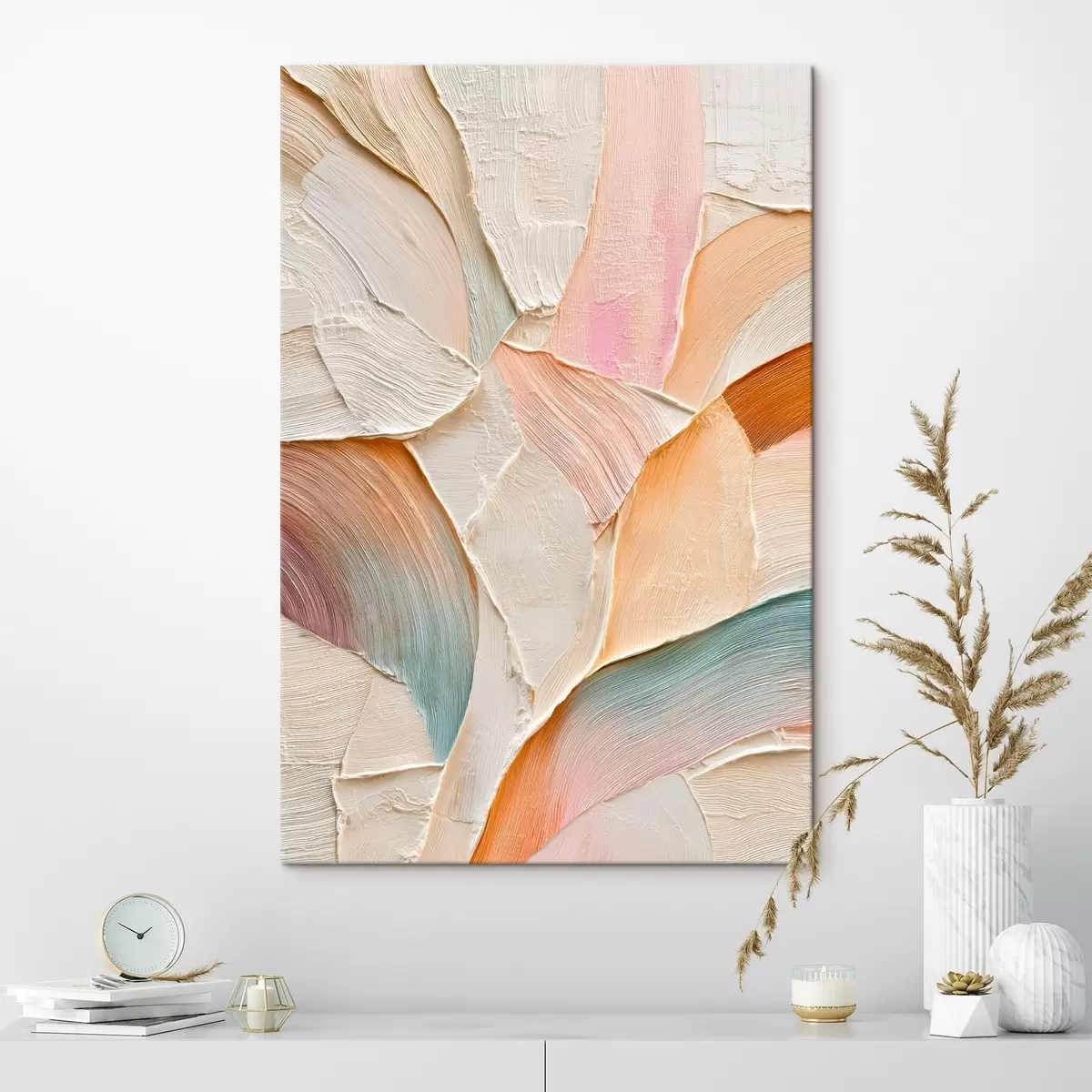 Obraz Abstrakcyjne tło z dynamicznymi pociągnięciami pędzla w odcieniach brzoskwini i błękitu Nr s48202