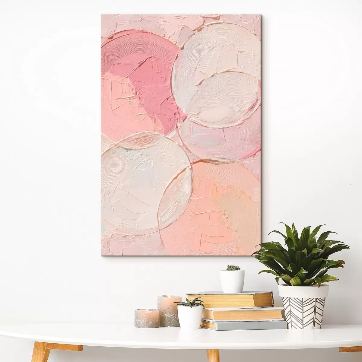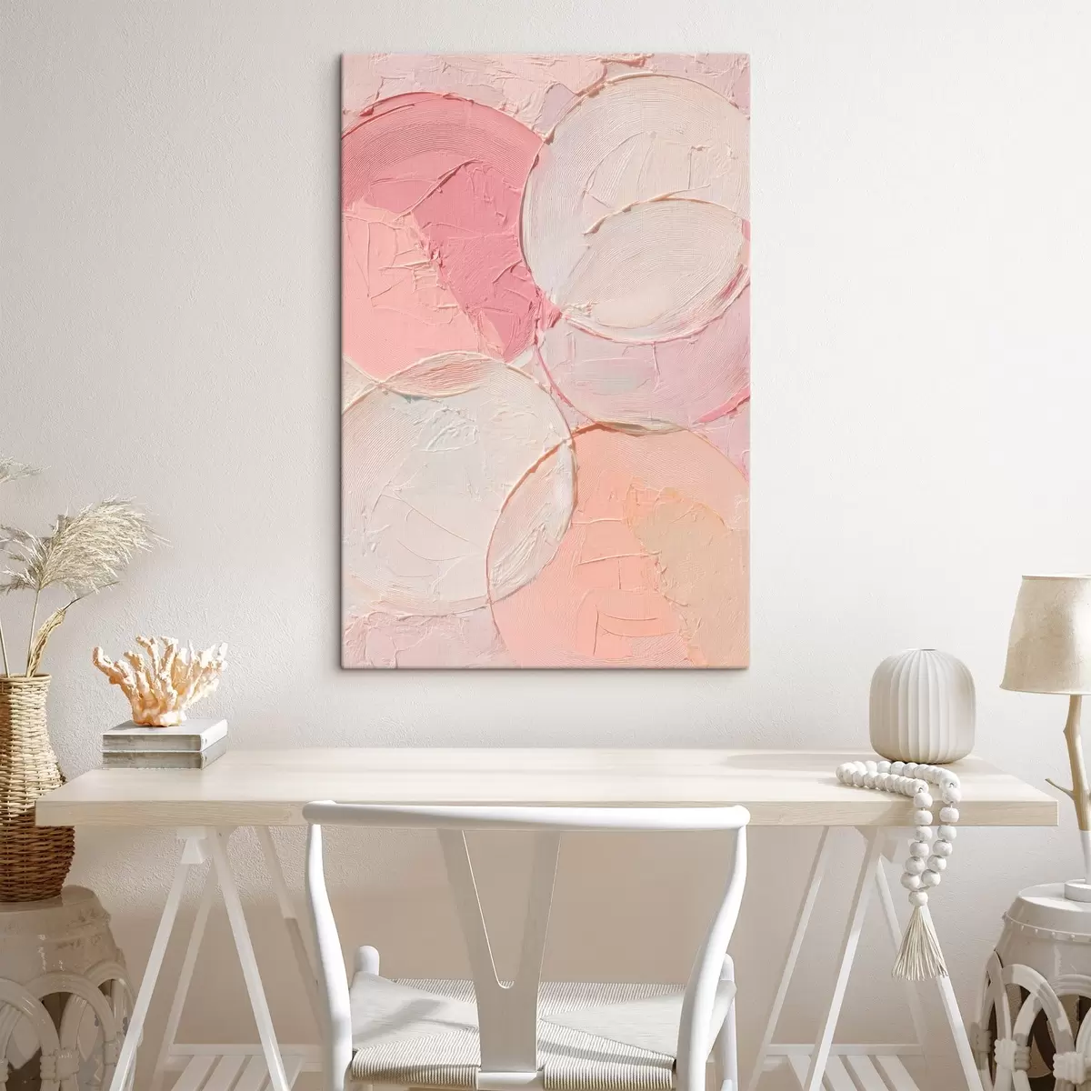 Obraz Kompozycja abstrakcyjna z okręgami w delikatnych odcieniach różu, utrzymana w stylu malarstwa olejnego Nr s48207