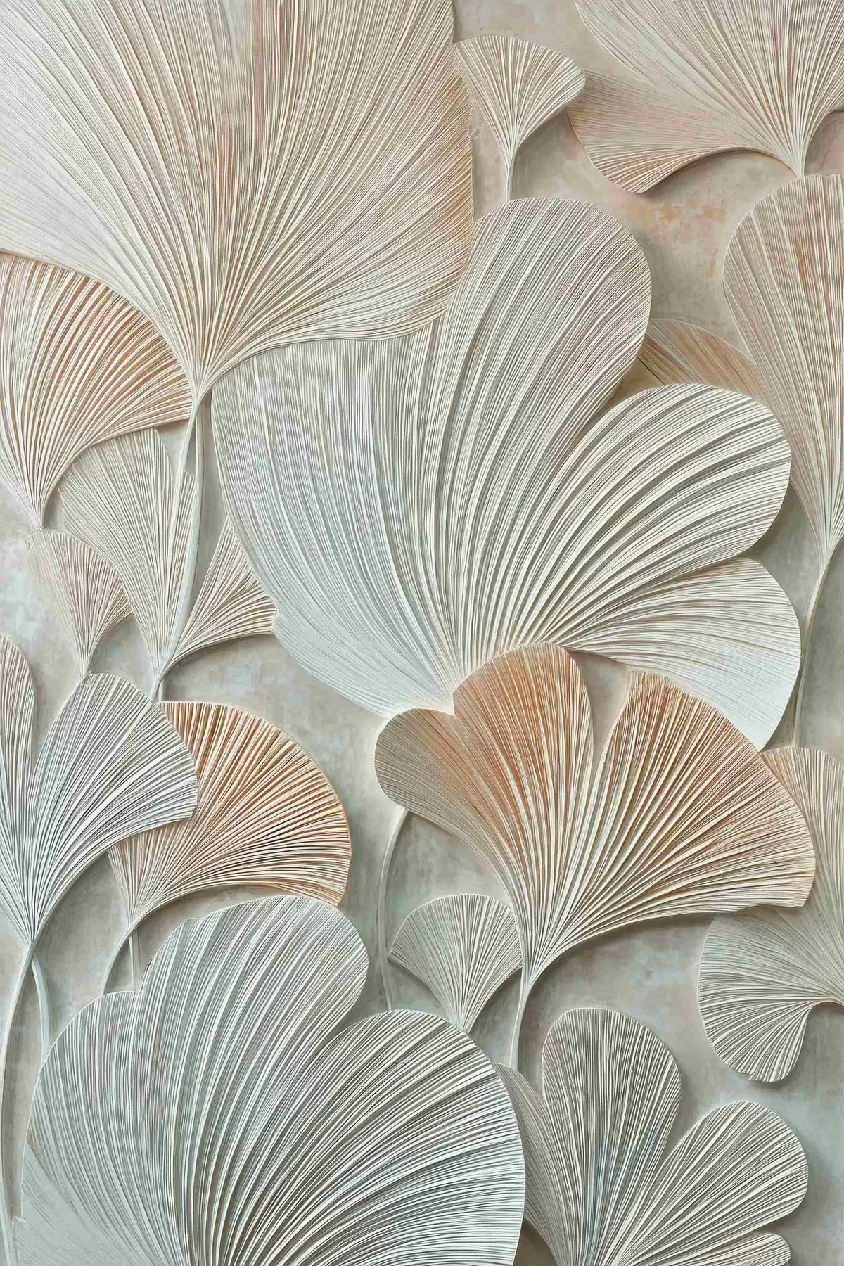 Obraz Stylizowane liście miłorzębu japońskiego o trójwymiarowej fakturze w pastelowych odcieniach s48209