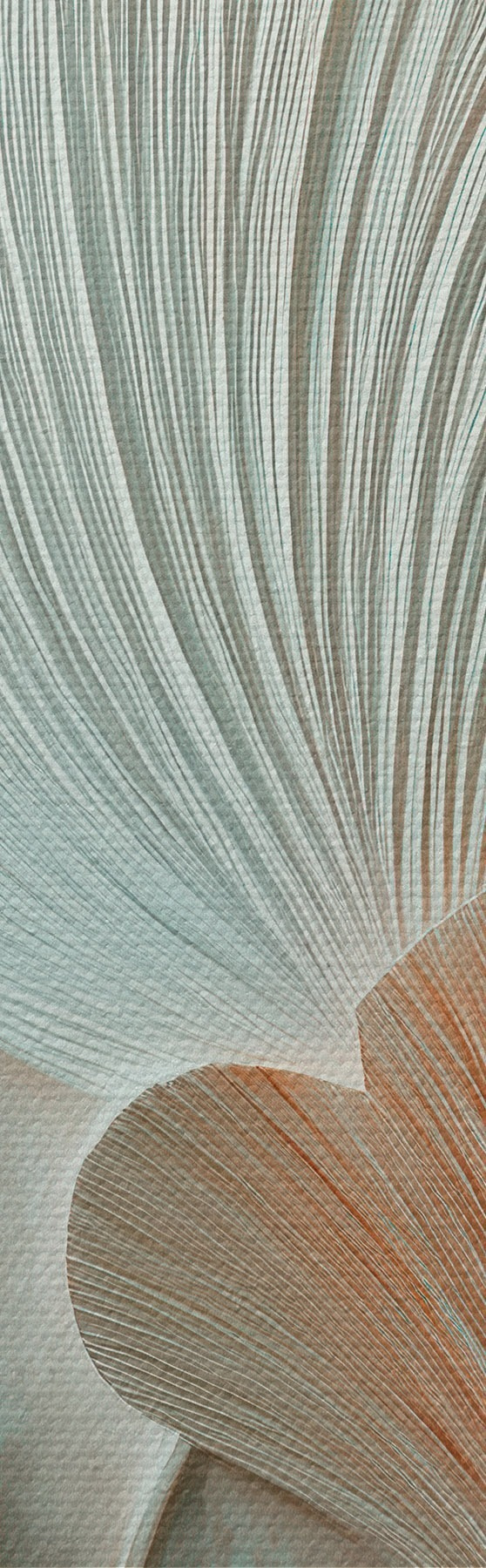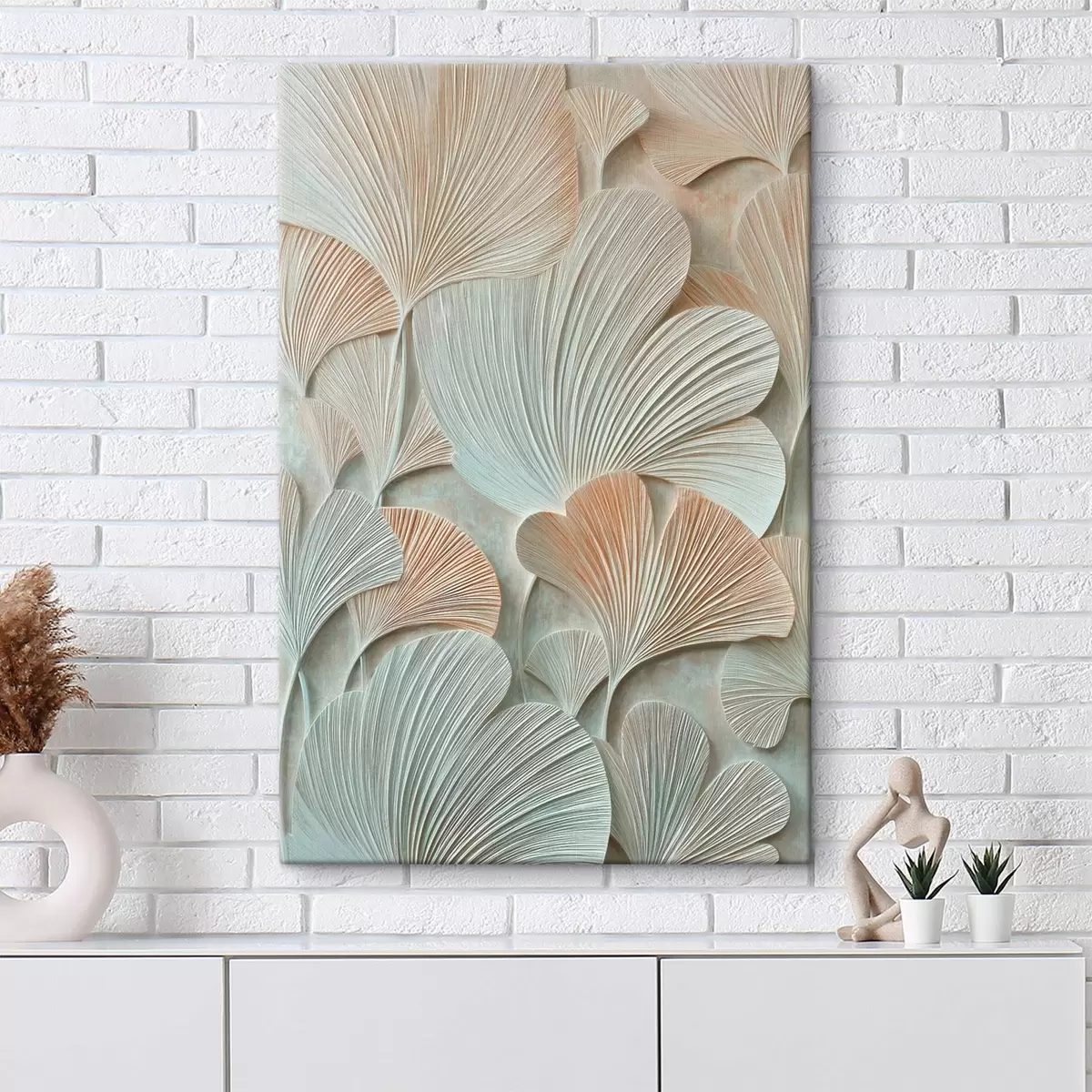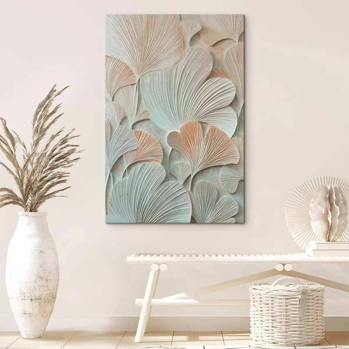 Obraz Stylizowane liście miłorzębu japońskiego o trójwymiarowej fakturze w pastelowych odcieniach Nr s48209