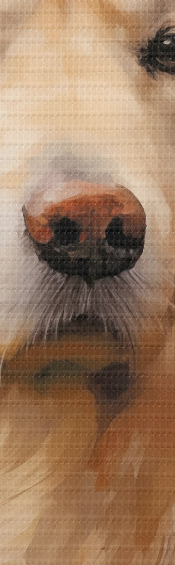 Drobny splot nici na tym płótnie przypomina powierzchnię profesjonalnych płócien artystycznych.