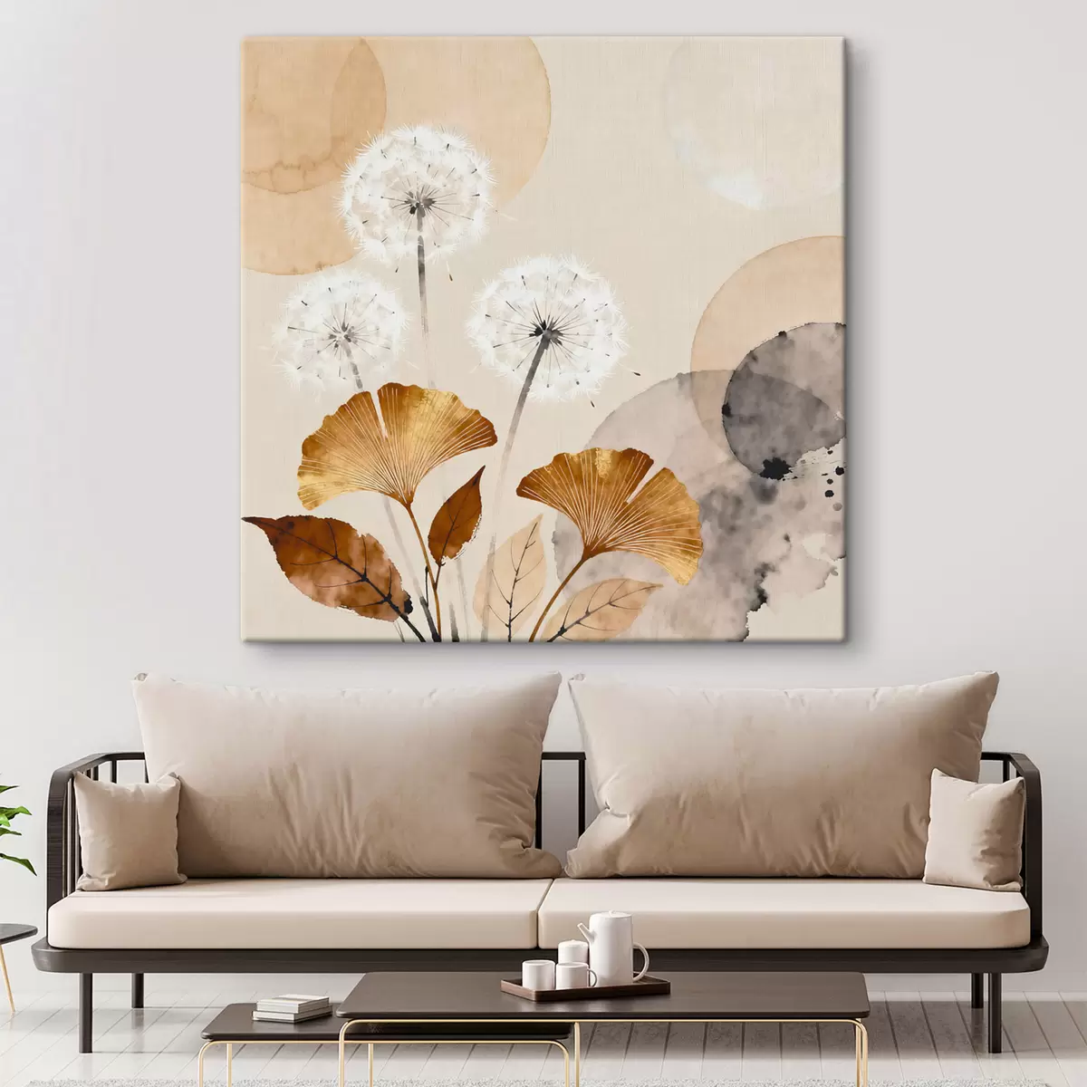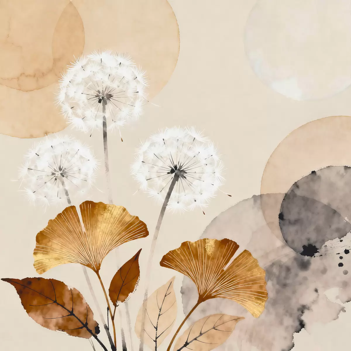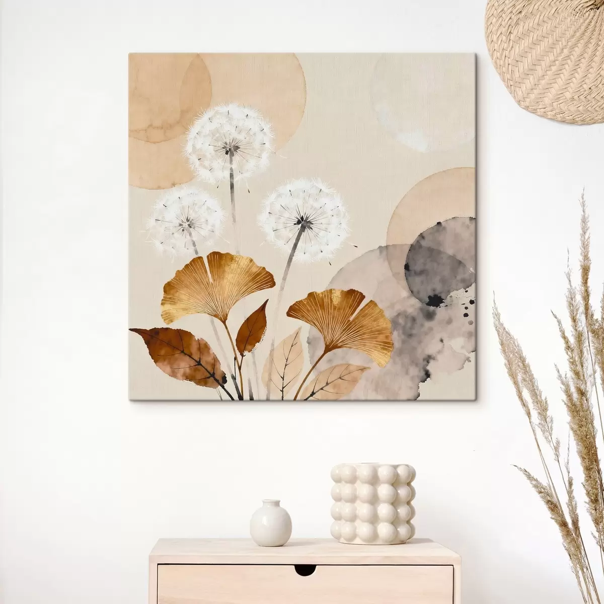 Obraz Abstrakcyjne motywy mleczy i liści miłorzębu Nr s48279