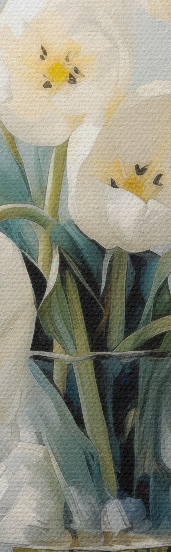 Drobny splot nici na tym płótnie przypomina powierzchnię profesjonalnych płócien artystycznych.