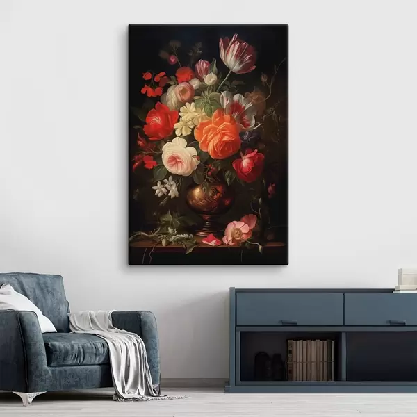 Obraz Bukiet kwiatów w wazonie na ciemnym tle Nr s48351