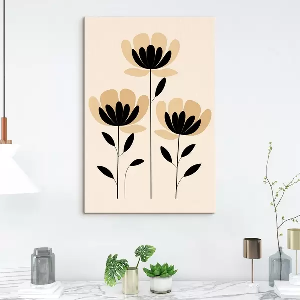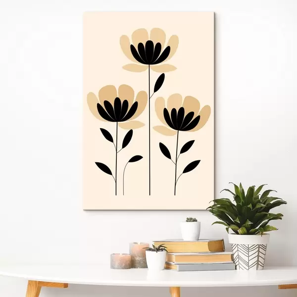 Obraz Minimalistyczne kwiaty w czarno-beżowej stylistyce Nr s48353