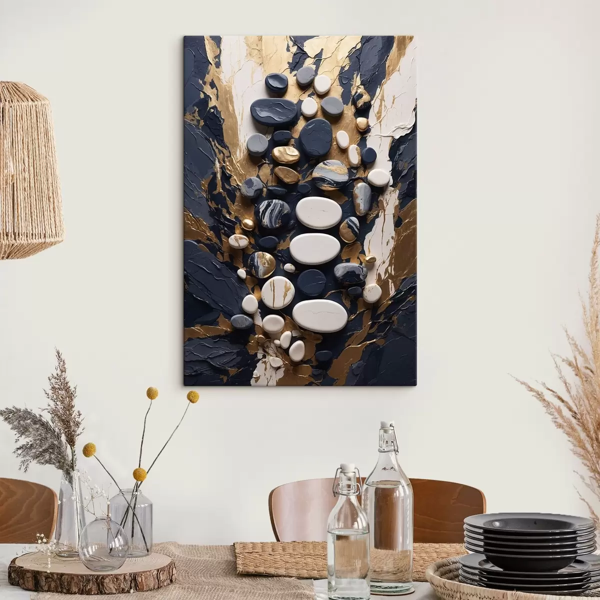 Obraz Kompozycja z abstrakcyjnych kamieni w ciemnoniebieskiej tonacji Nr s48357