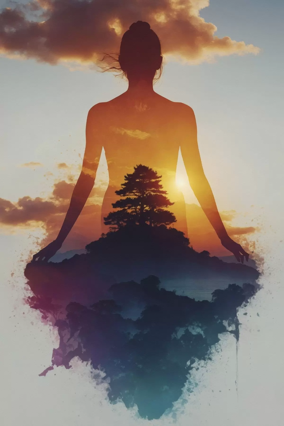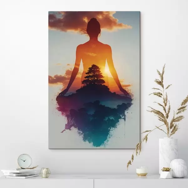 Obraz Sylwetka człowieka na tle krajobrazu o zachodzie słońca Nr s48364