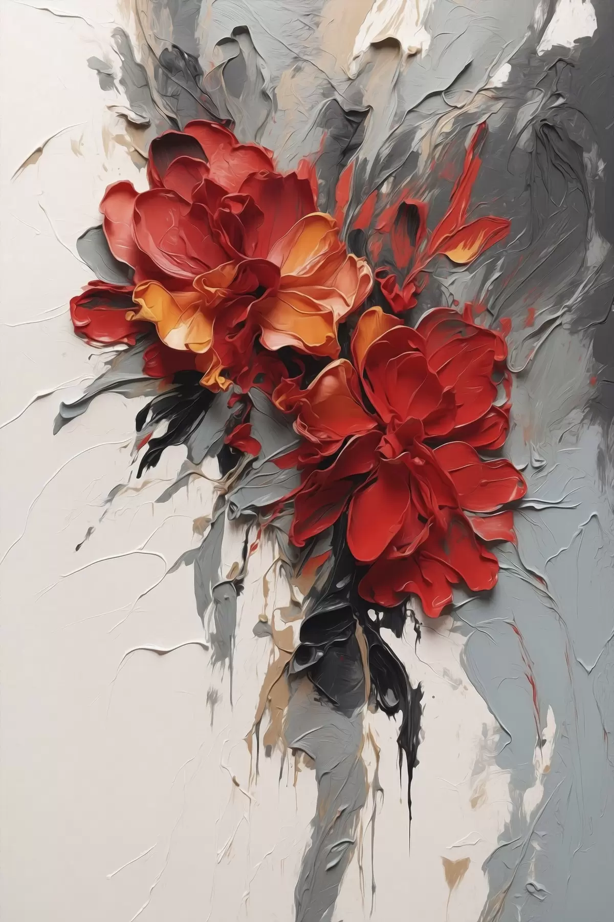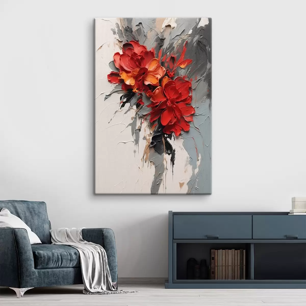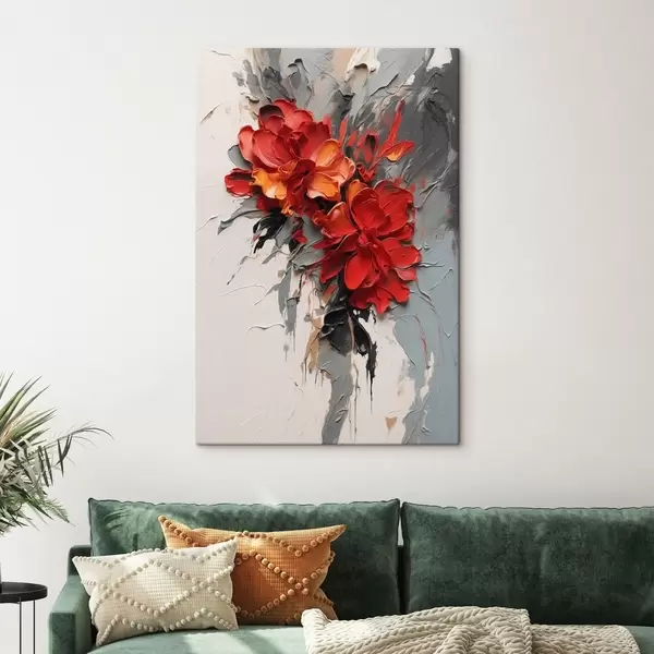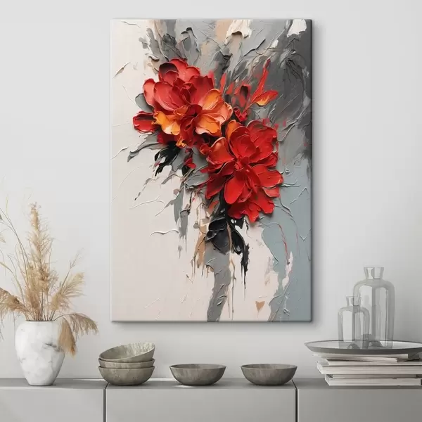Obraz Czerwone kwiaty z fakturą pociągnięć pędzlem na jasnym tle Nr s48365