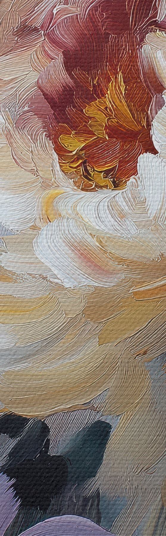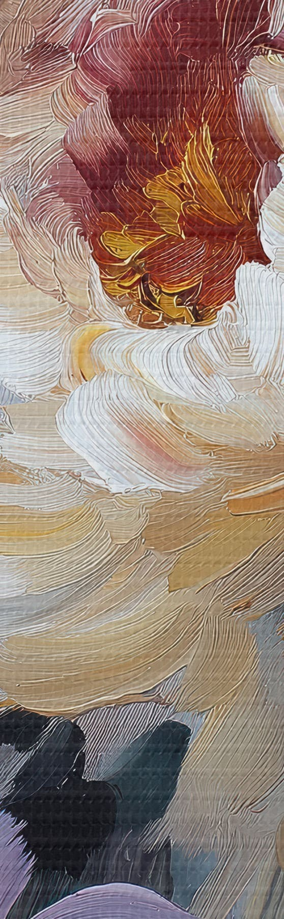 Drobny splot nici na tym płótnie przypomina powierzchnię profesjonalnych płócien artystycznych.