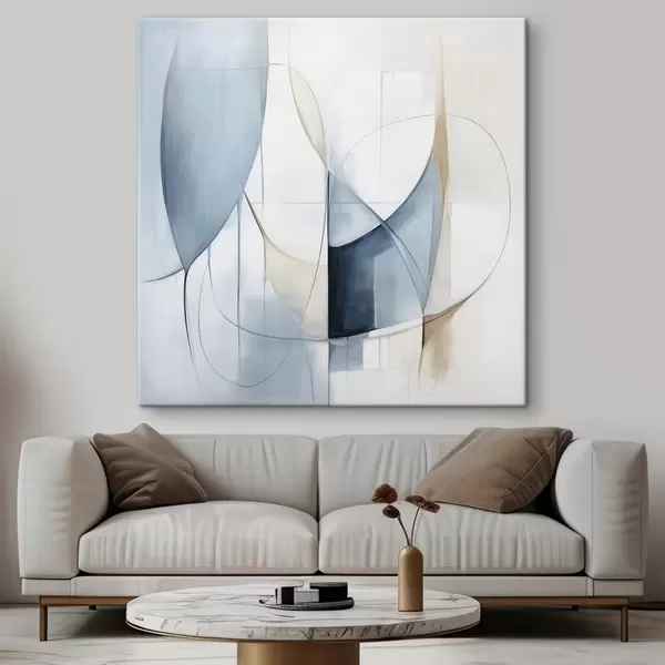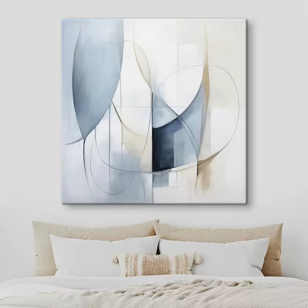 Obraz Abstrakcyjna, minimalistyczna kompozycja z niebieskimi i beżowymi kształtami Nr s48404