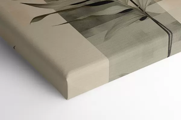 Obraz Ciemnozielona roślina z abstrakcyjnymi geometrycznymi kształtami i akwarelowymi fakturami w odcieniach beżu i zieleni Nr s48410