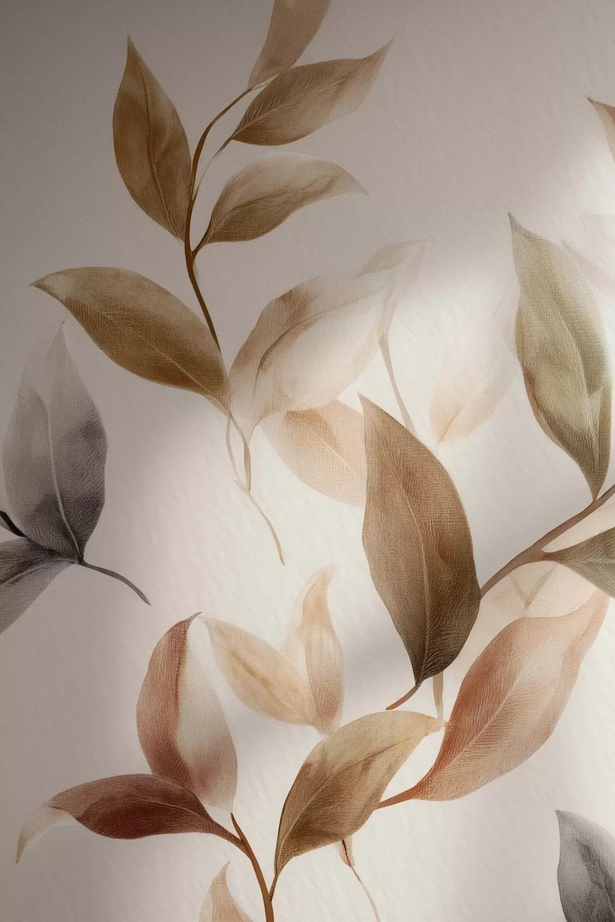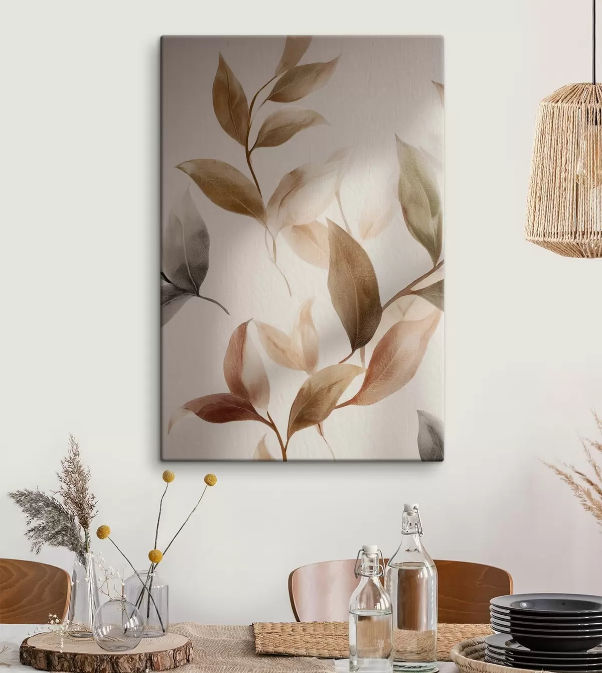 Obraz Malowanie liśćmi, beżowe gałęzie, minimalizm, styl skandynawski Nr s48479