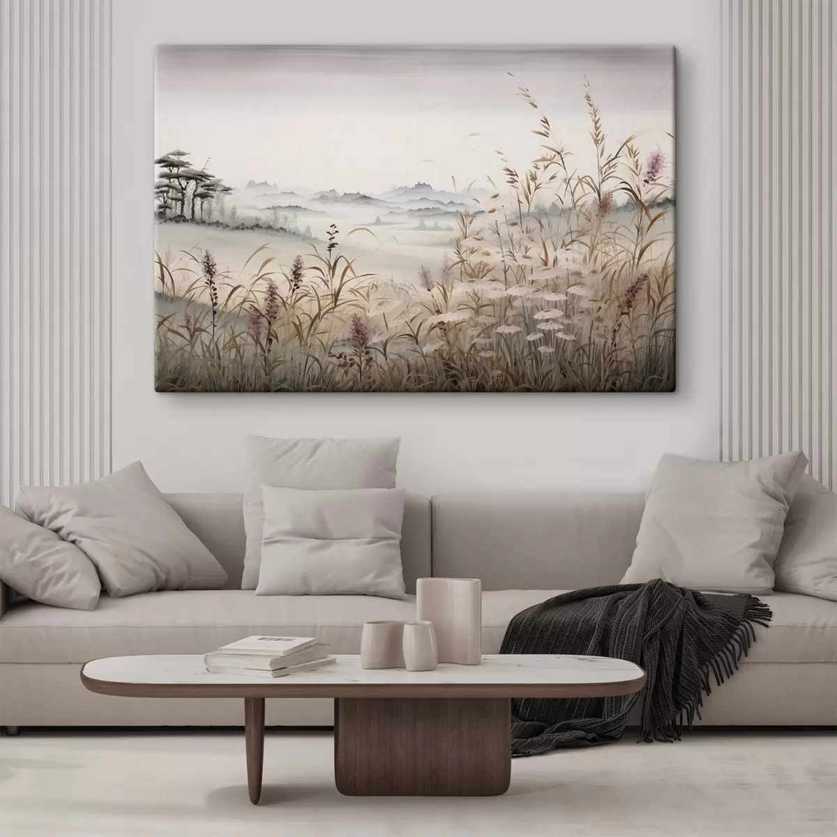 Obraz Mglisty krajobraz z trawami Nr s48481