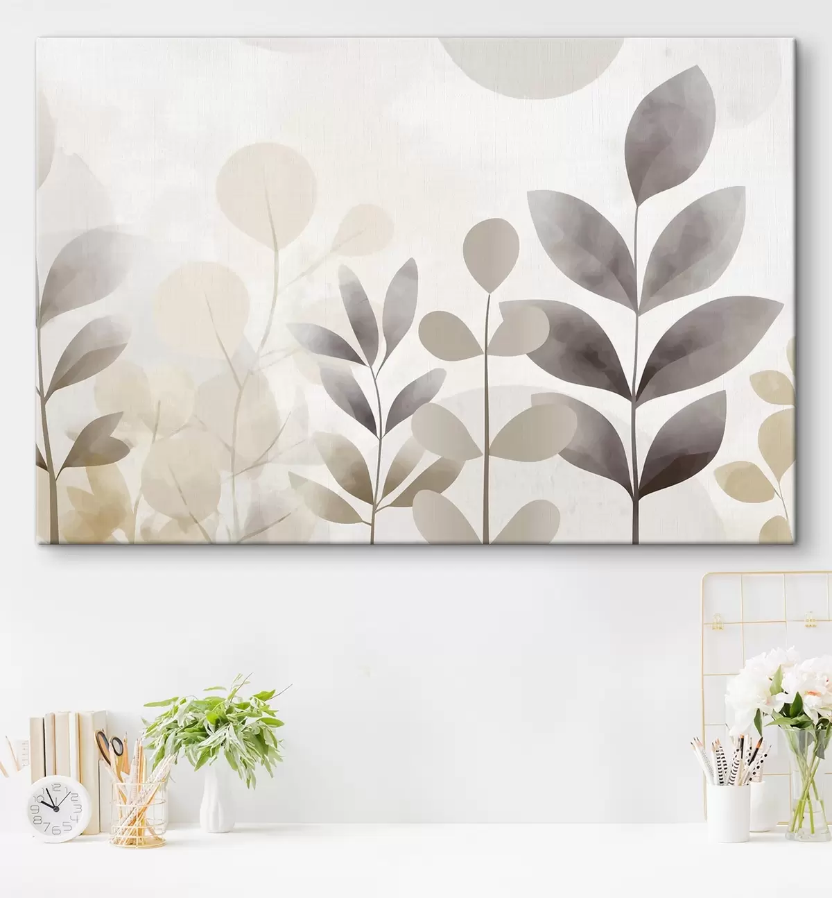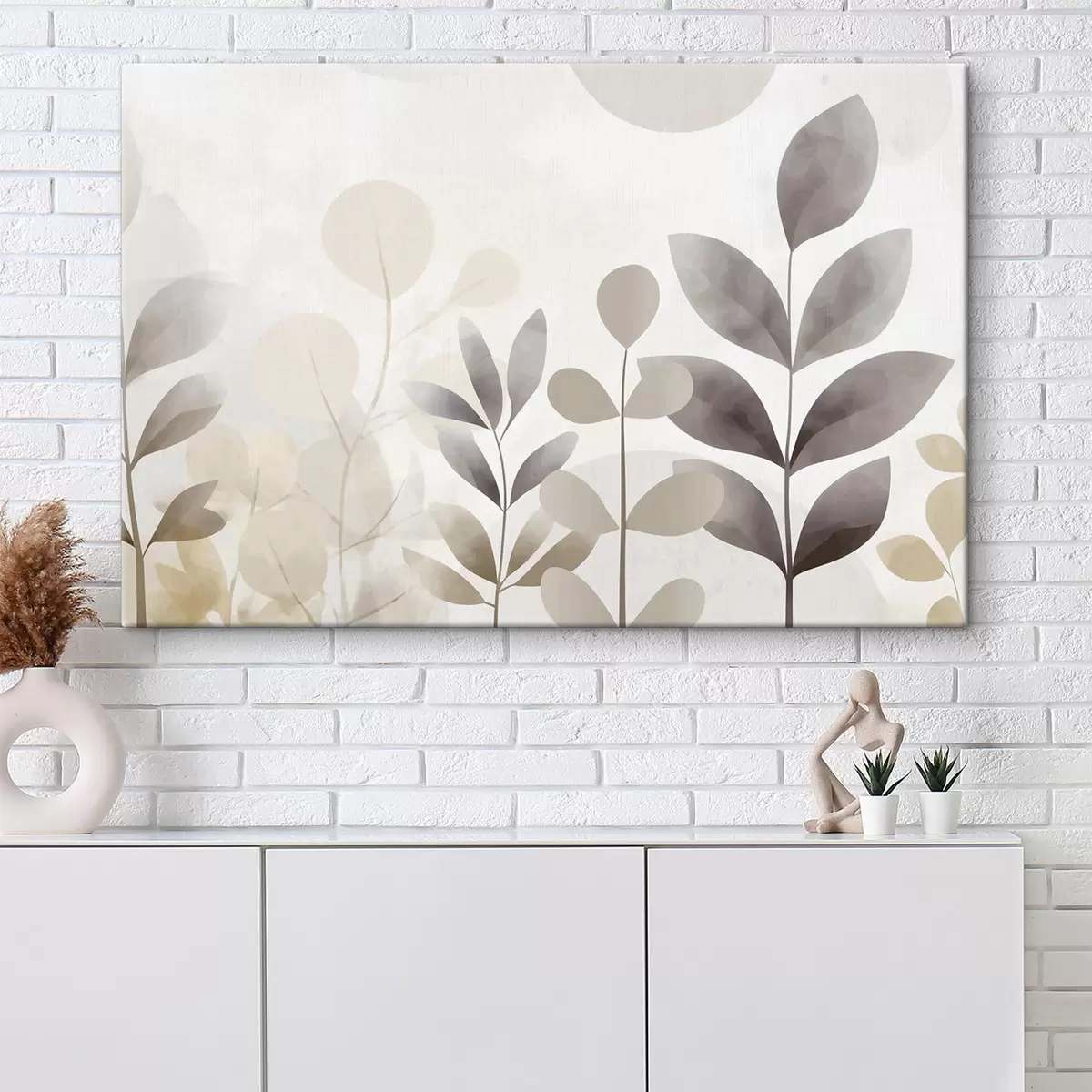 Obraz Beżowe i szare sylwetki liści, minimalizm s48487