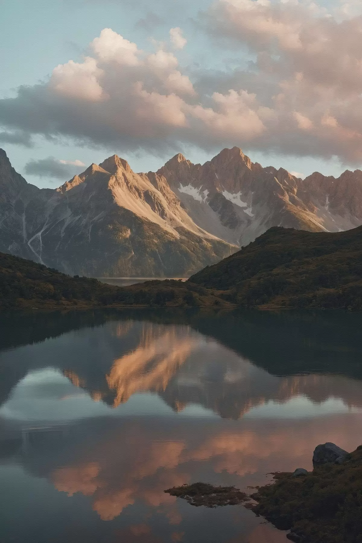 Obraz Górski krajobraz z odbiciem jeziora Nr s48493