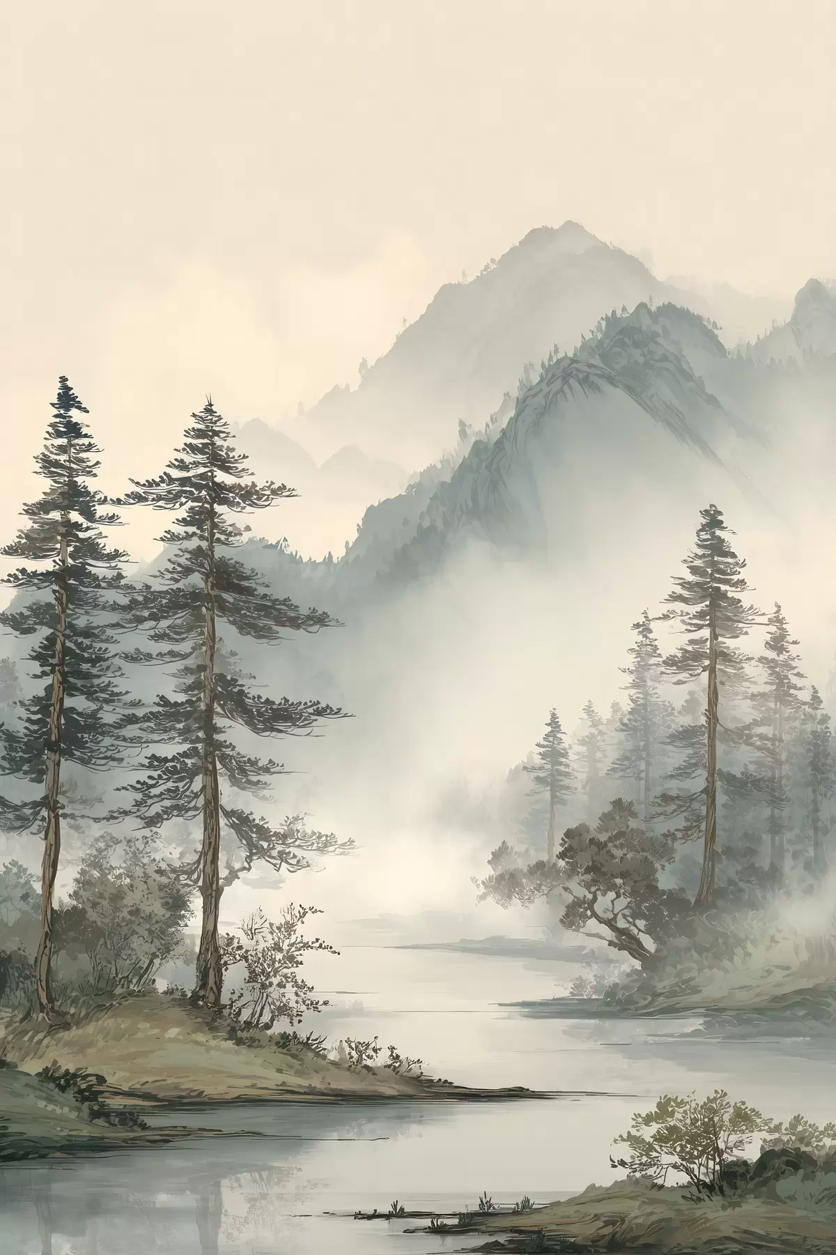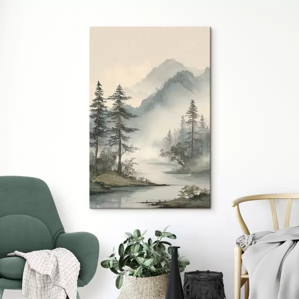 Obraz górski krajobraz z sosnami i rzeką Nr s48532