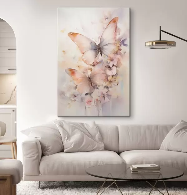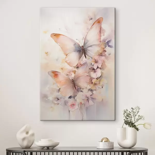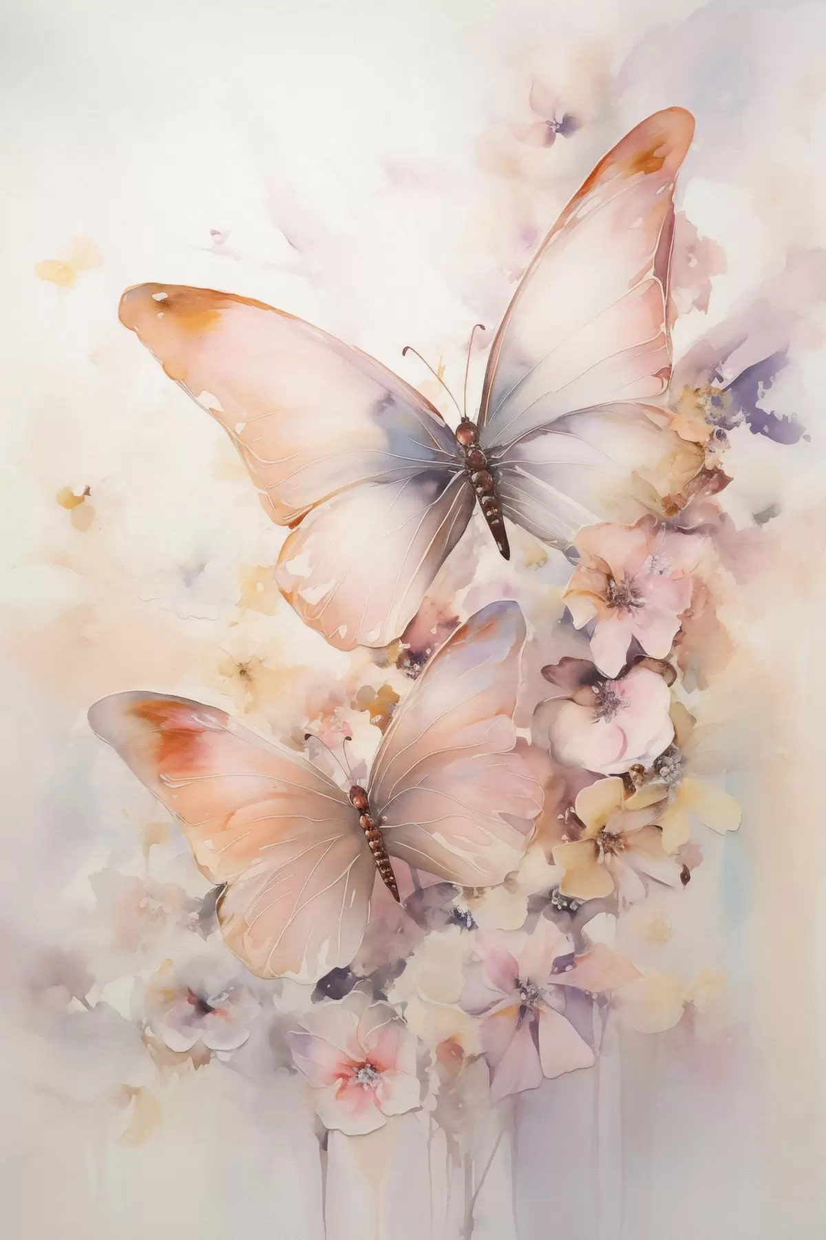 Obraz Delikatne kwiaty z motylami, pastelowe kolory s48563