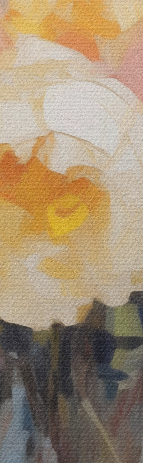 Drobny splot nici na tym płótnie przypomina powierzchnię profesjonalnych płócien artystycznych.