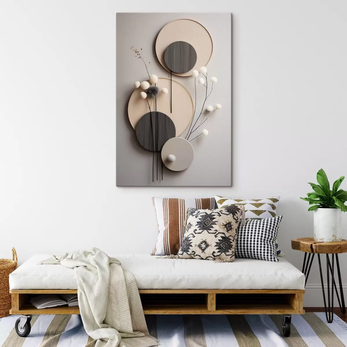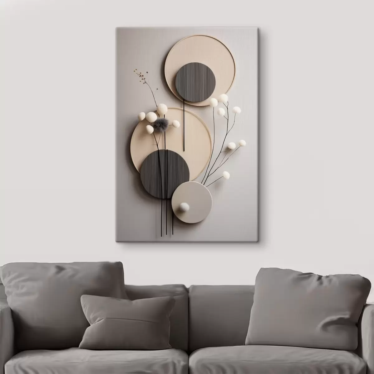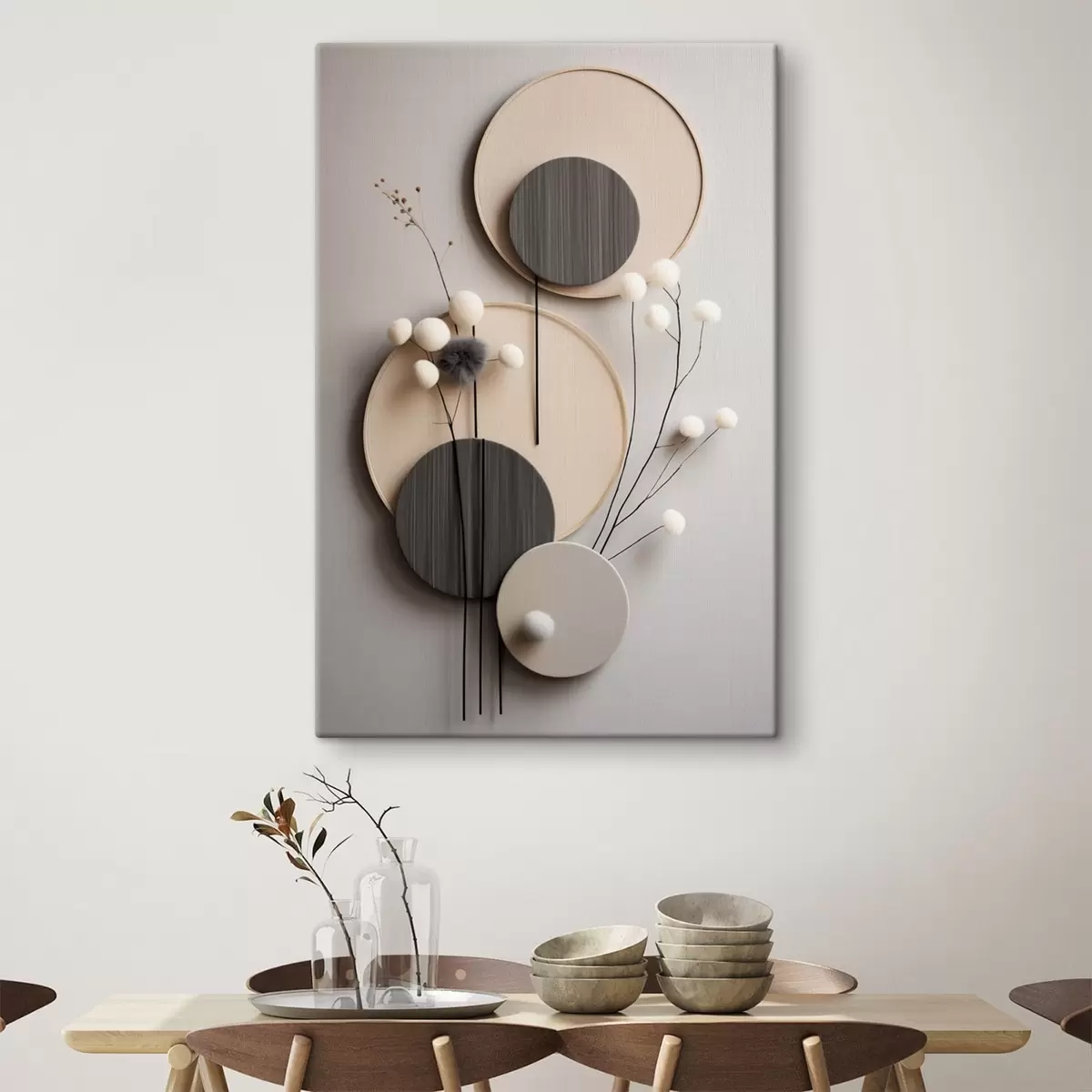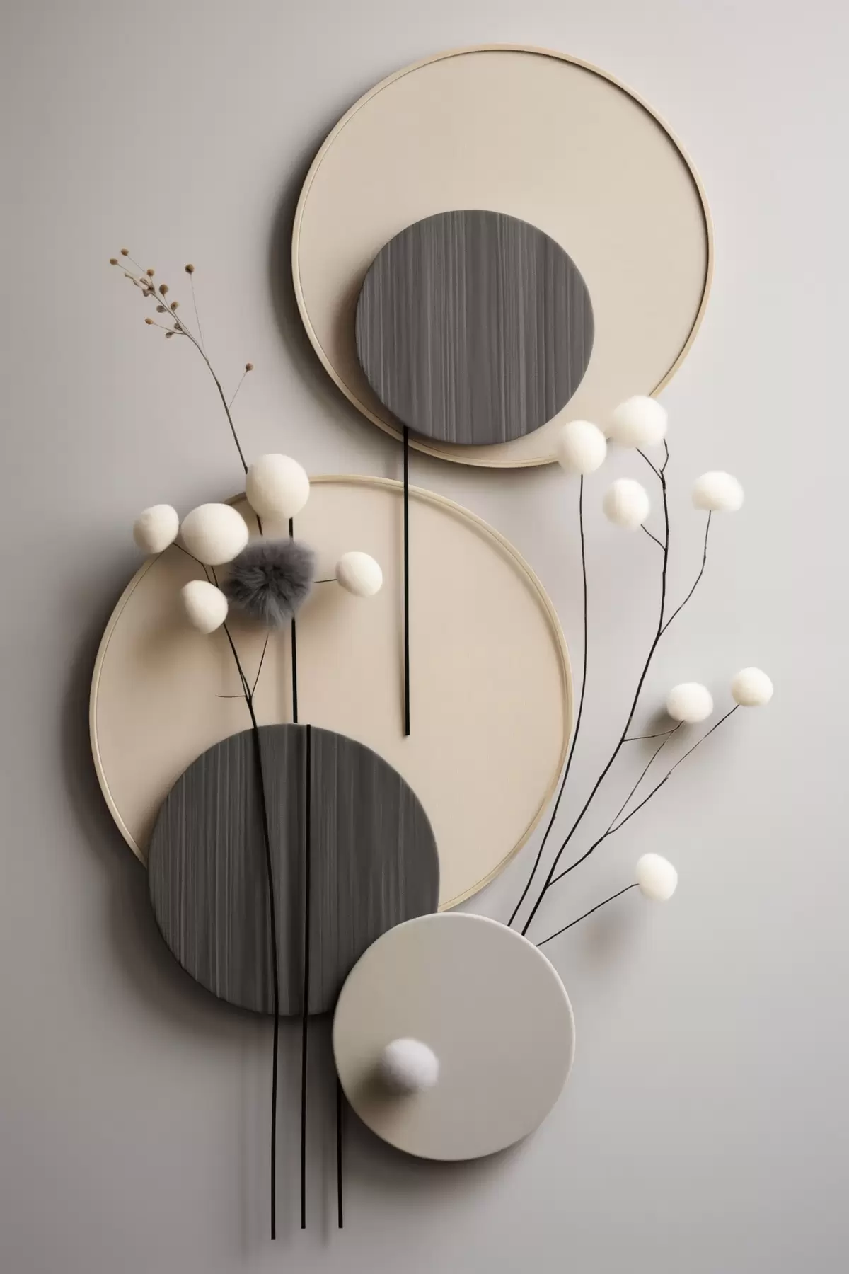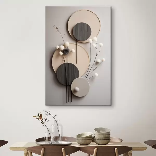 Obraz Okrągłe panele z suchymi gałązkami i miękkimi kulkami Nr s48601