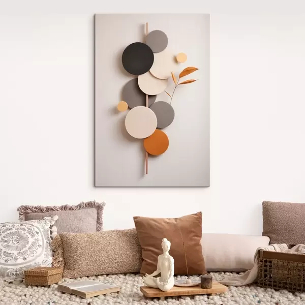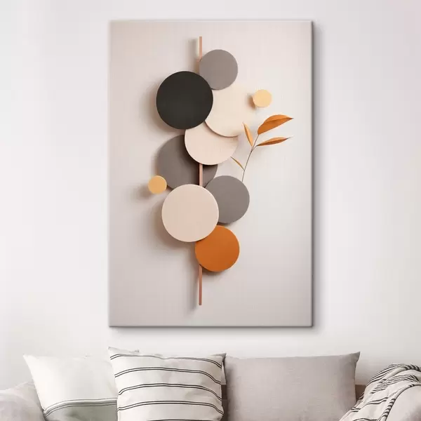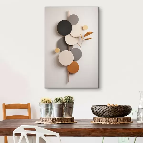 Obraz Abstrakcyjne koła z liśćmi w stonowanych barwach s48602