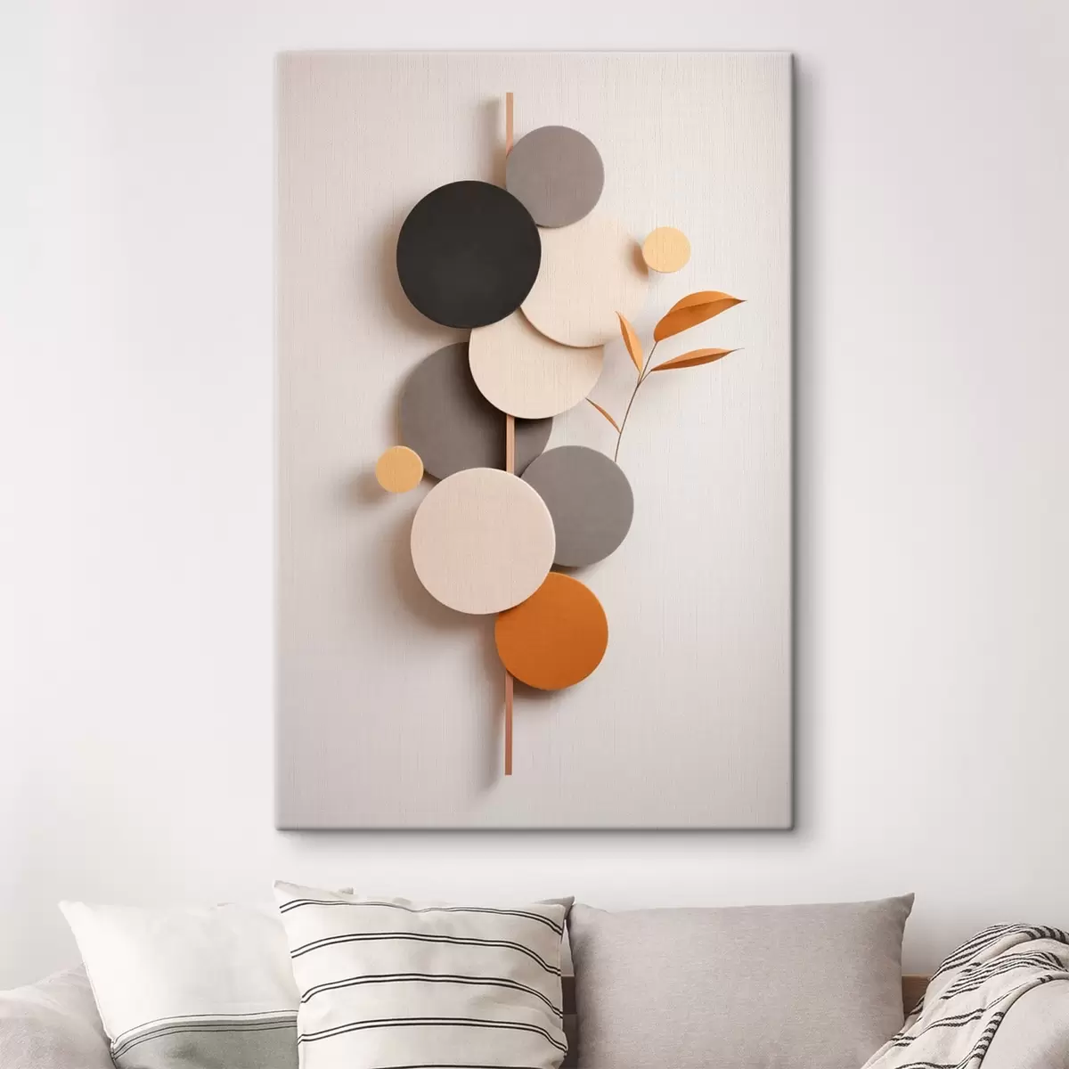 Obraz Abstrakcyjne koła z liśćmi w stonowanych barwach Nr s48602