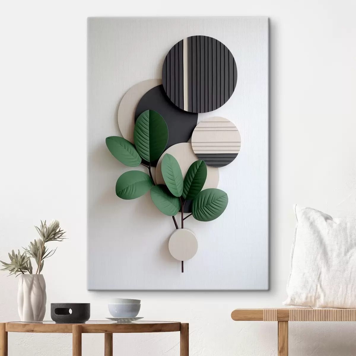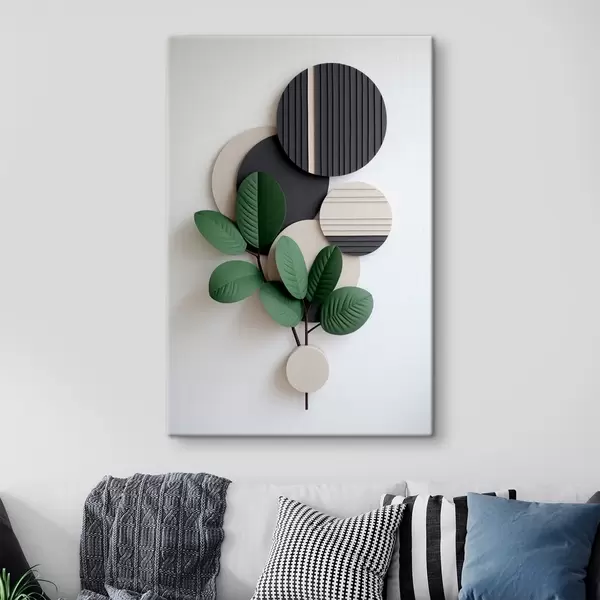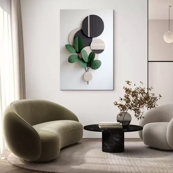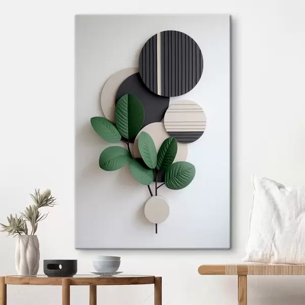 Obraz Zielone liście z okrągłymi, reliefowymi elementami Nr s48603