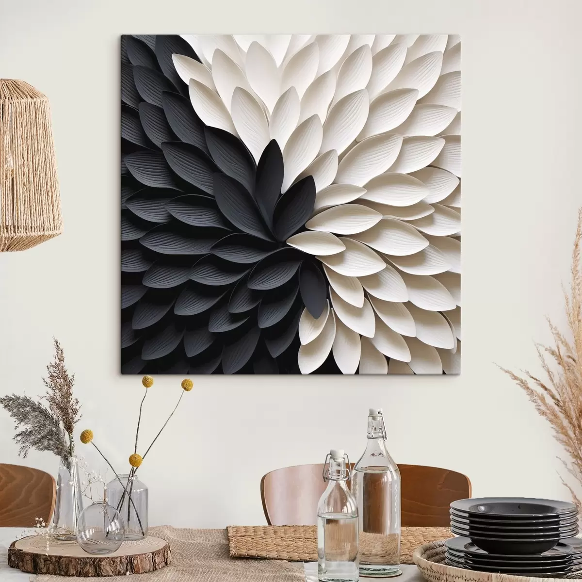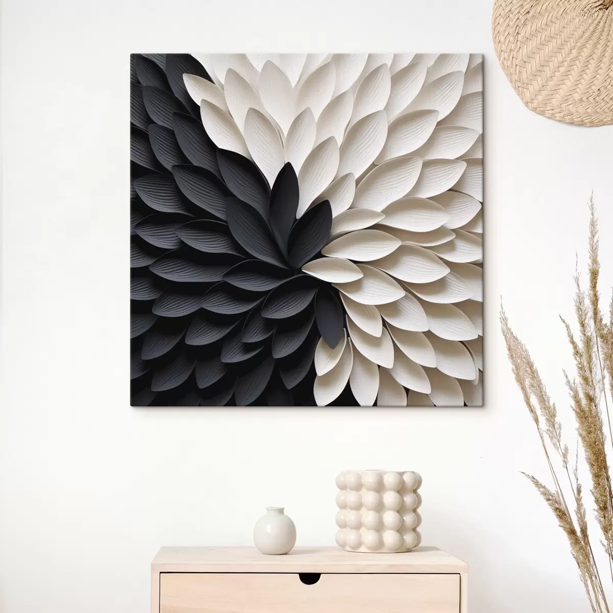 Obraz Kontrastujące jasne i ciemne płatki w kształcie kwiatu Nr s48604