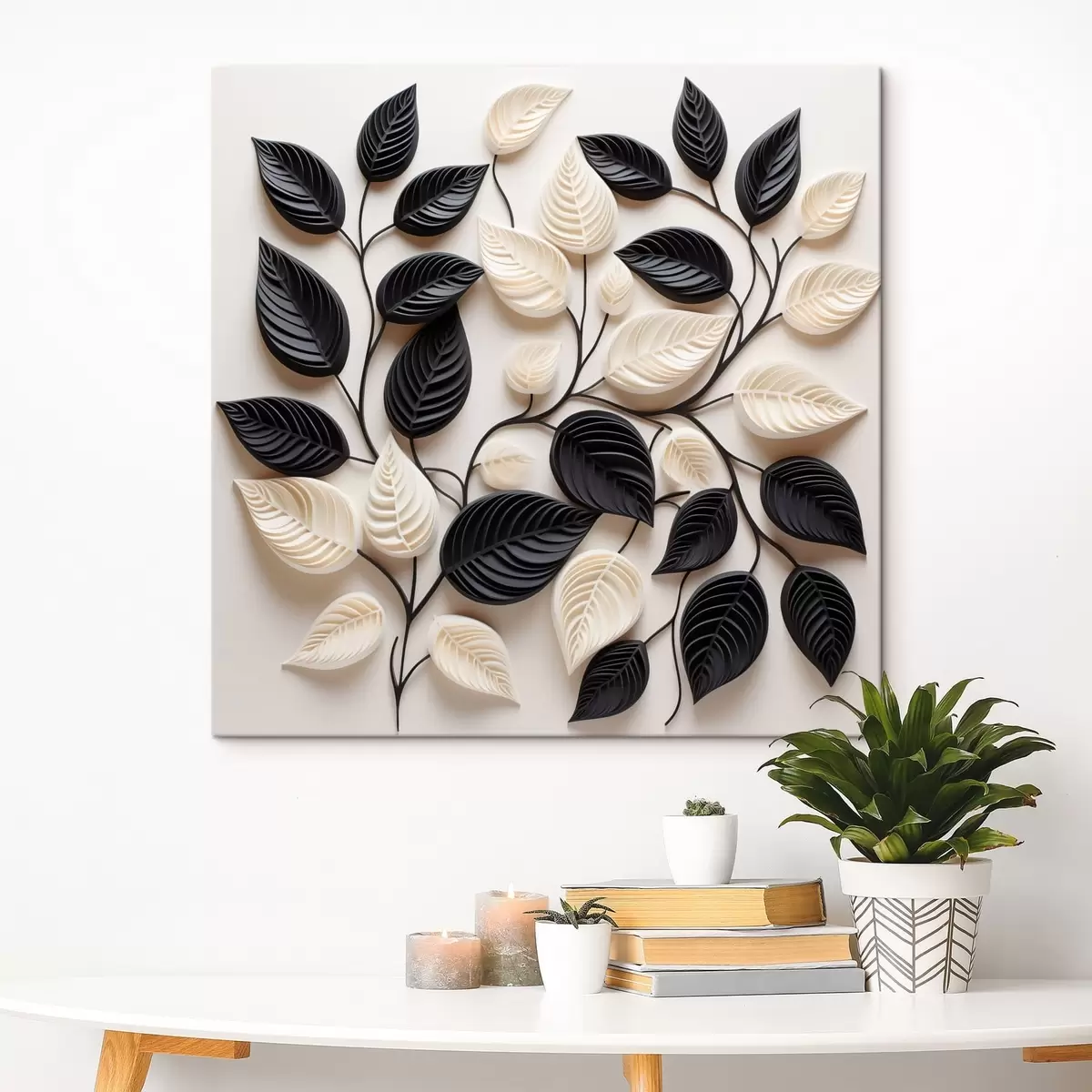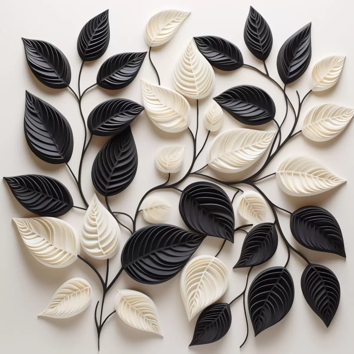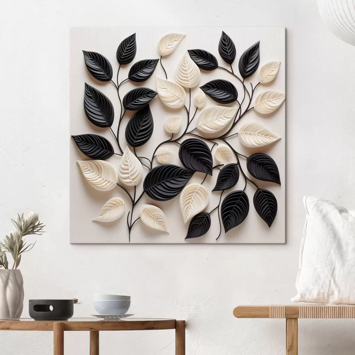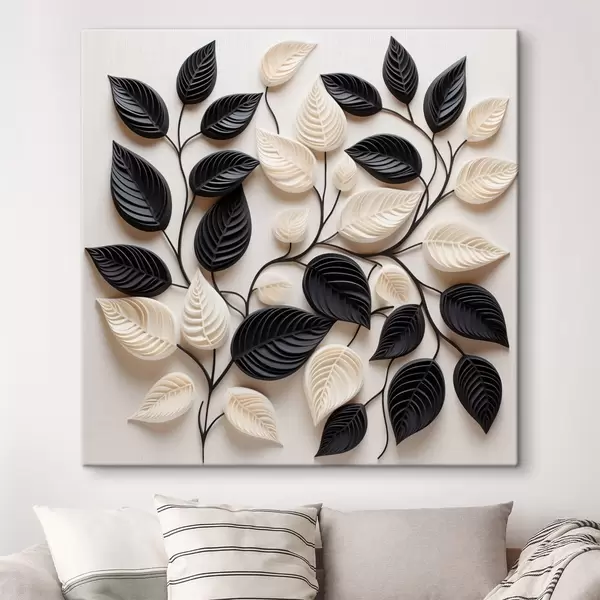 Obraz Kompozycja z czarnych i jasnych liści na gałęziach Nr s48606