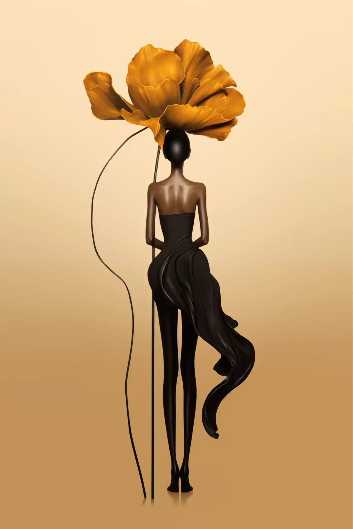 Obraz Stylizowana postać z wielkim kwiatem zamiast głowy Nr s48618