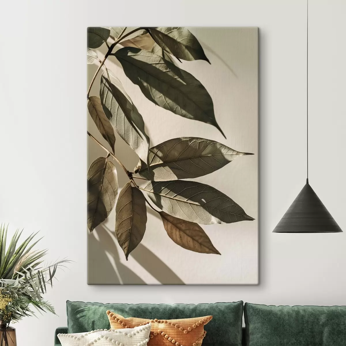 Obraz Gałązki oliwne, beżowe i zielone motywy roślinne Nr s48627