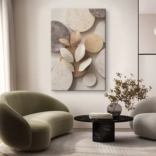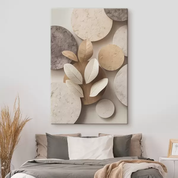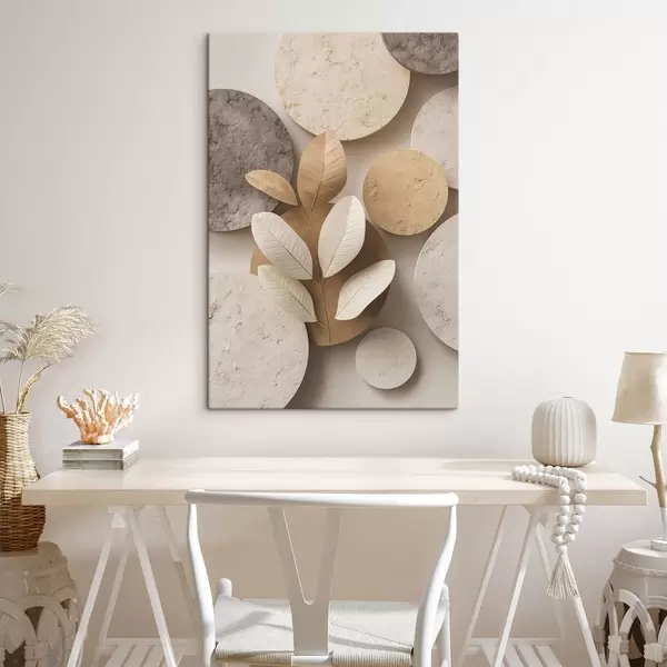 Obraz Kompozycja z liśćmi i okręgami Nr s48691