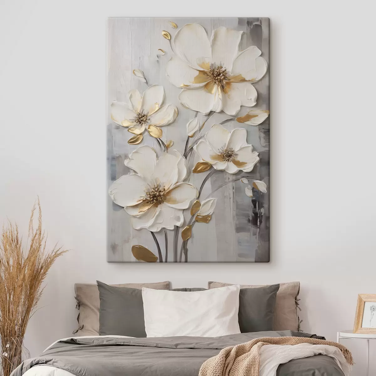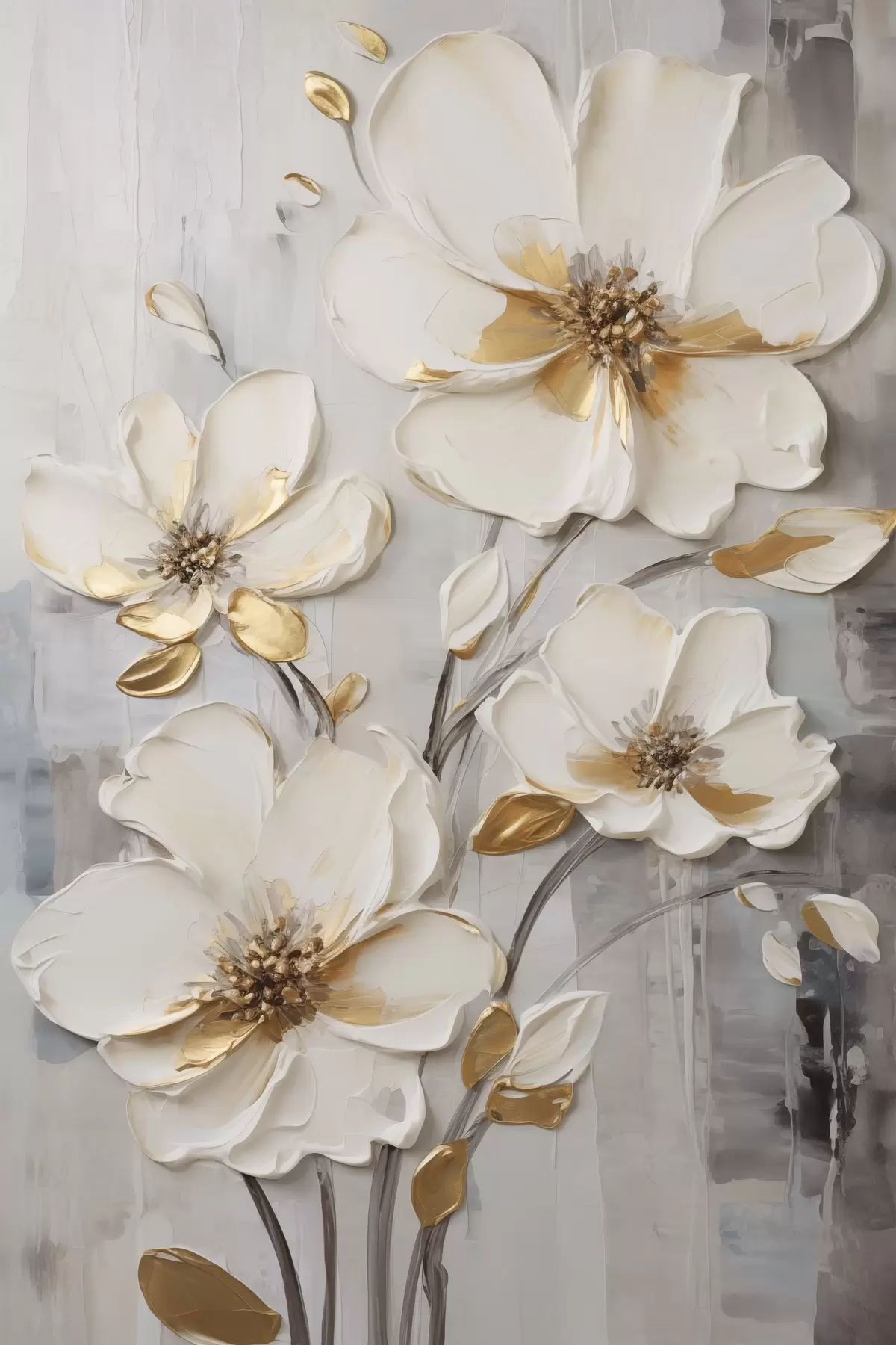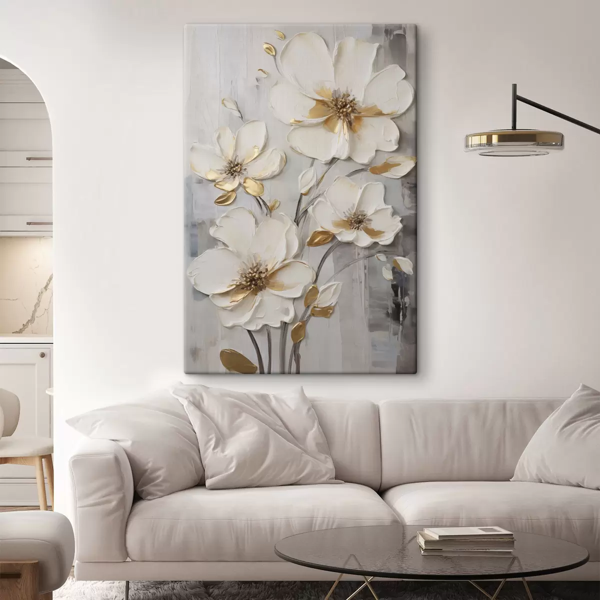Obraz Białe kwiaty z żółtymi akcentami na teksturowanym tle Nr s48721